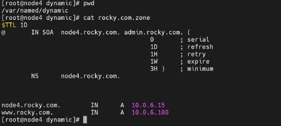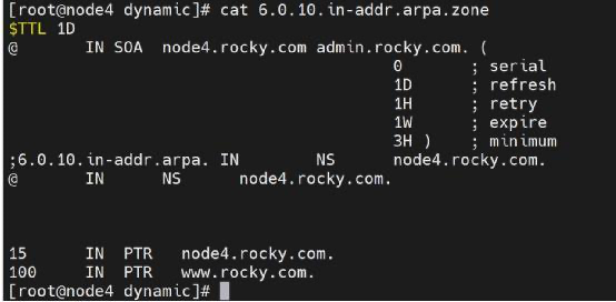 [root@node4 ~]# nslookup 10.0.6.100100.6.0.10.in-addr.arpa name = www.rocky.com.