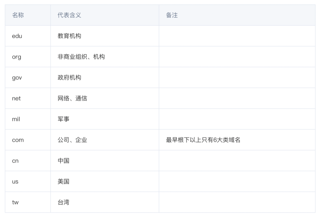 随着网络快速增长,后来就出现了,以国家或地区区分的Domain name。