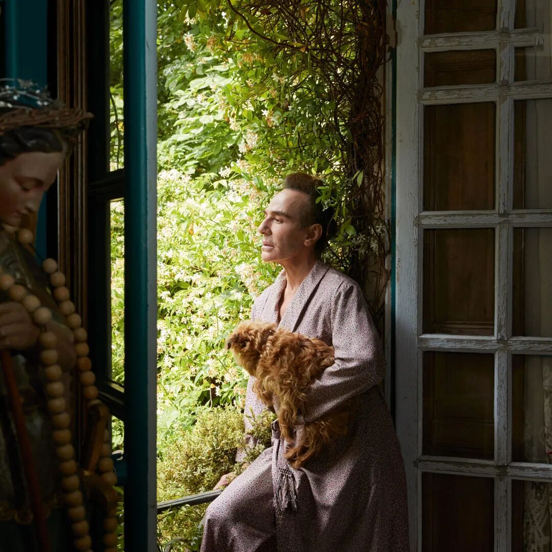 John Galliano和爱犬在其乡间的宅邸。