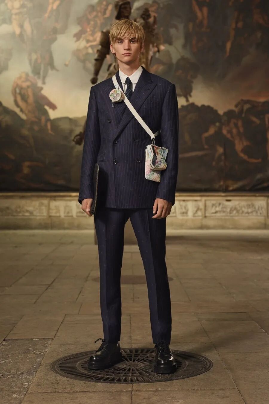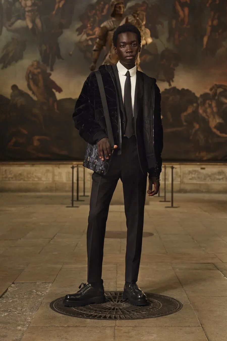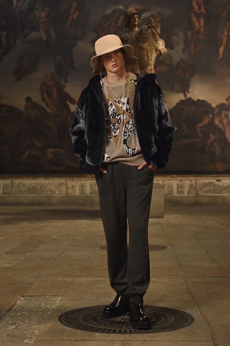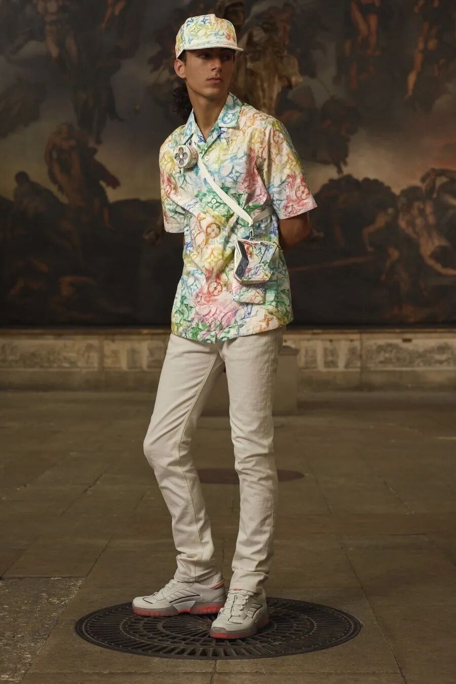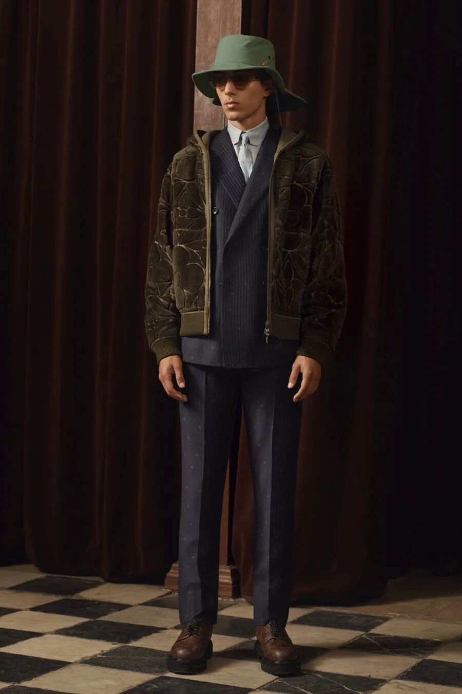此次LV的Look像是在油画中伫立的男子,精致剪裁的西装,利落帅气的皮衣,机能感十足的风衣夹克、经典的Monogram图案贯穿整个系列,Virgil Abloh竭力的向人们展示Louis Vuitton的历史、工艺与交际能力。