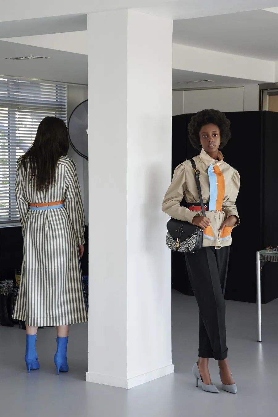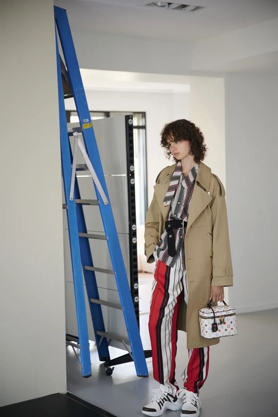看完了男装的早春,再来看看女装。LV女装创意总监Nicolas Ghesquière选在巴黎总部完成系列的拍摄,复印机、出口标志和防火门的工作环境与美国还有居家形成反差。