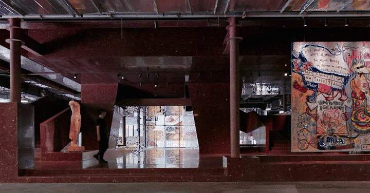 我们现在看到的这个动画,相当于一个人走在这个建筑当中,他会被这些墙体包裹。这些空间当中,每一个空间之间的氛围是连接的,怎么能用这种建筑的关系形成这种连接?当你走完之后出来,刚刚这些图片的闪现都是基于你在里面游走的时候给你的印象。所有这些印象的出现和形成都是基于我们对这个连贯的氛围所形成的记忆。