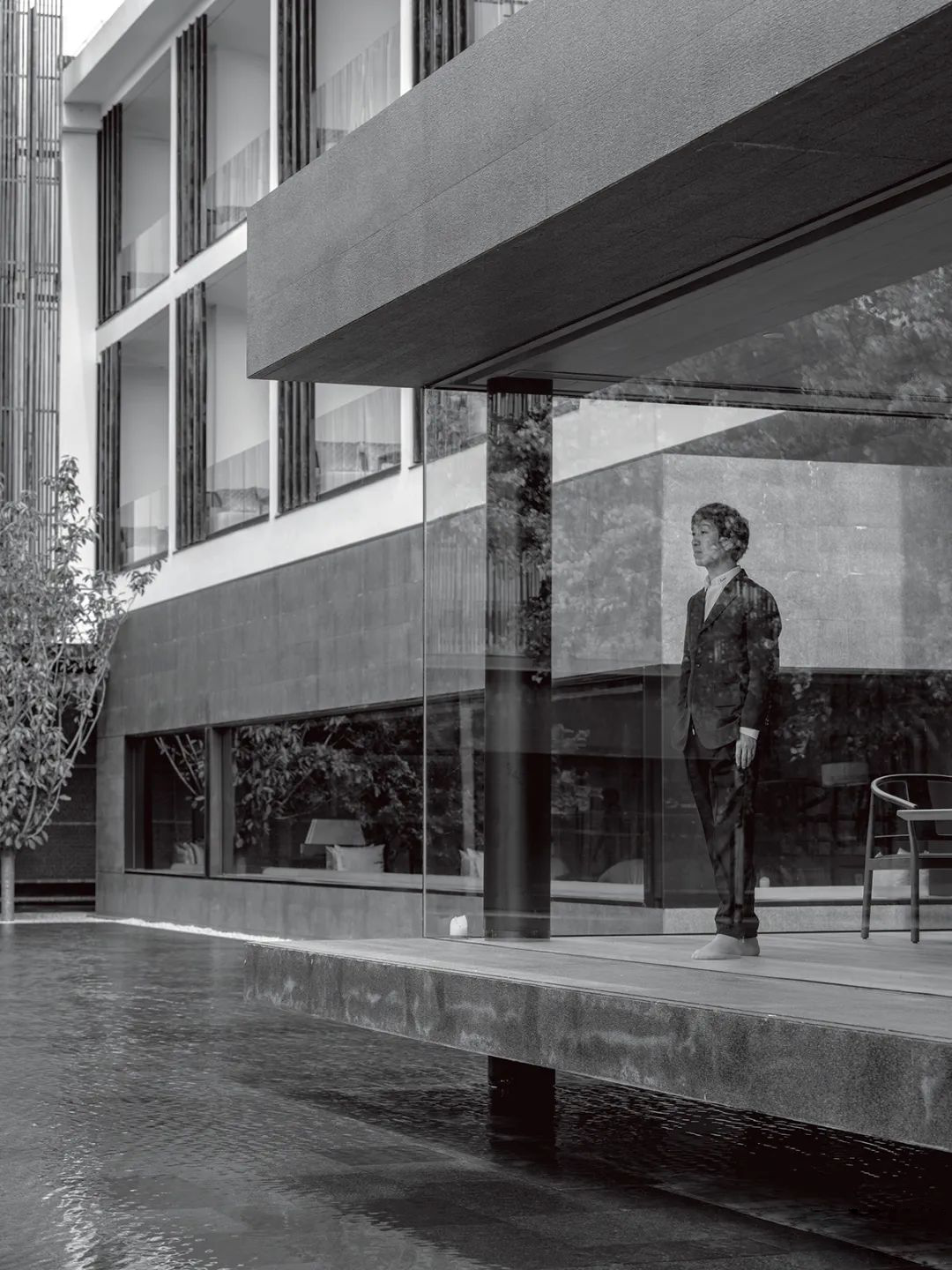 当身处琚宾所营造的设计作品中时,你会惊奇地发现:比起分享,更愿意享受难得的私密与安静。他在项目中,时而实践一种中国园林的当代性转换,也关照到“人们如何在薄薄的水面上看到微风”。这源于琚宾喜爱的宋画,他着迷于其中水波纹的画法,当一滴水落到深处的意境被释放时,力量可能是无穷无尽的。傍晚时分,当一切都被过滤掉的时候,池面上的水波纹便会像宋画中的几十种画法一般,随着阵阵微风和夕阳任意变换。