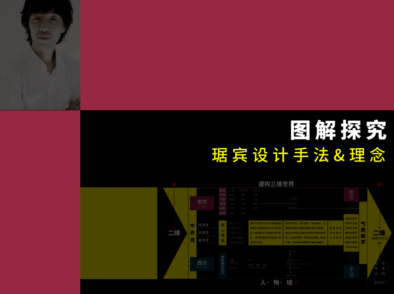 致力于研究中国文化在建筑空间里的运用和创新,以个性化、独特的视觉语言来表达设计理念,以全新的视觉传达来解读中国文化元素。
