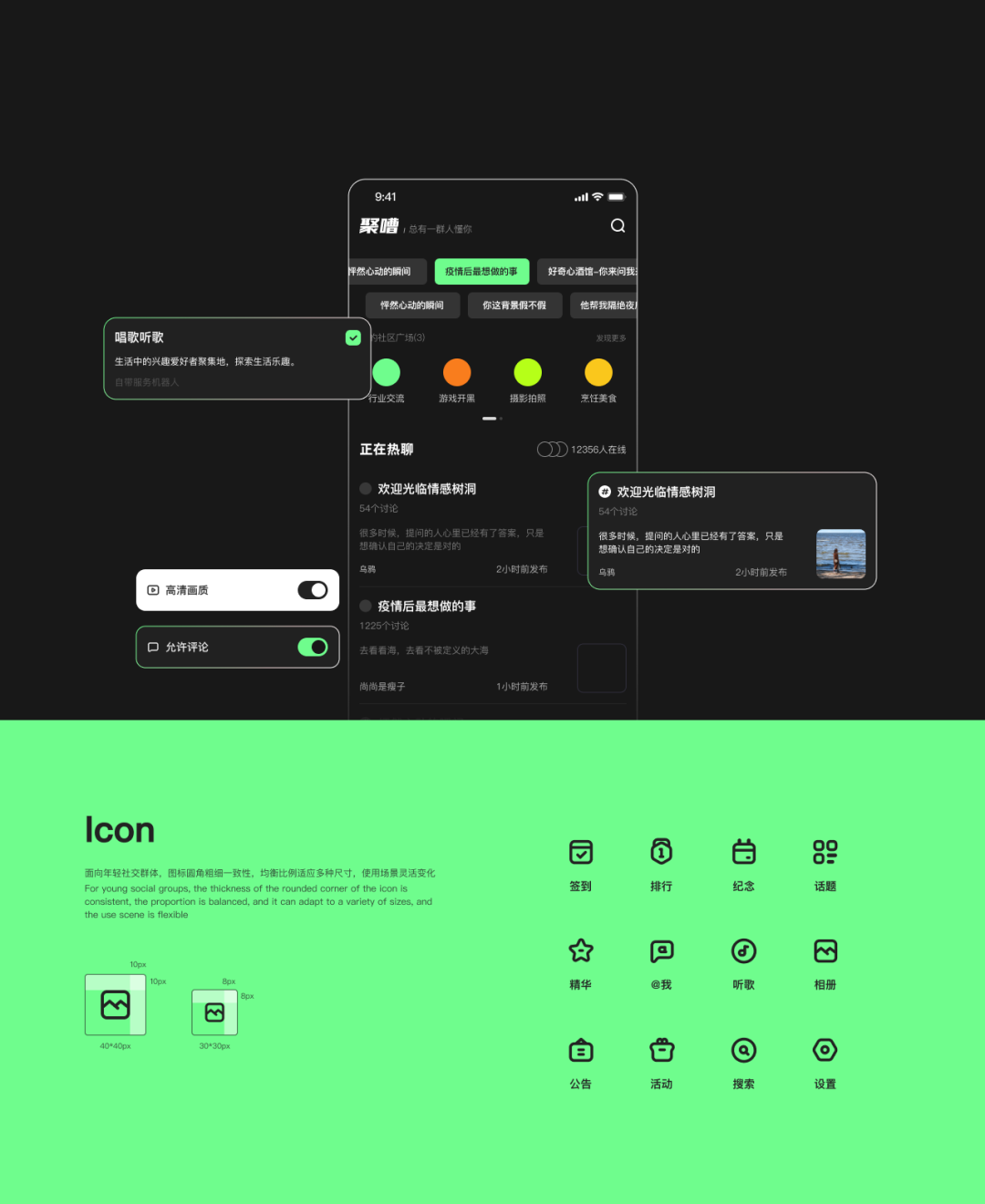 “聚嘈”定位是一个完全开放、聚集潮流、高质量交流的社区平台,主打社区群组聊天。