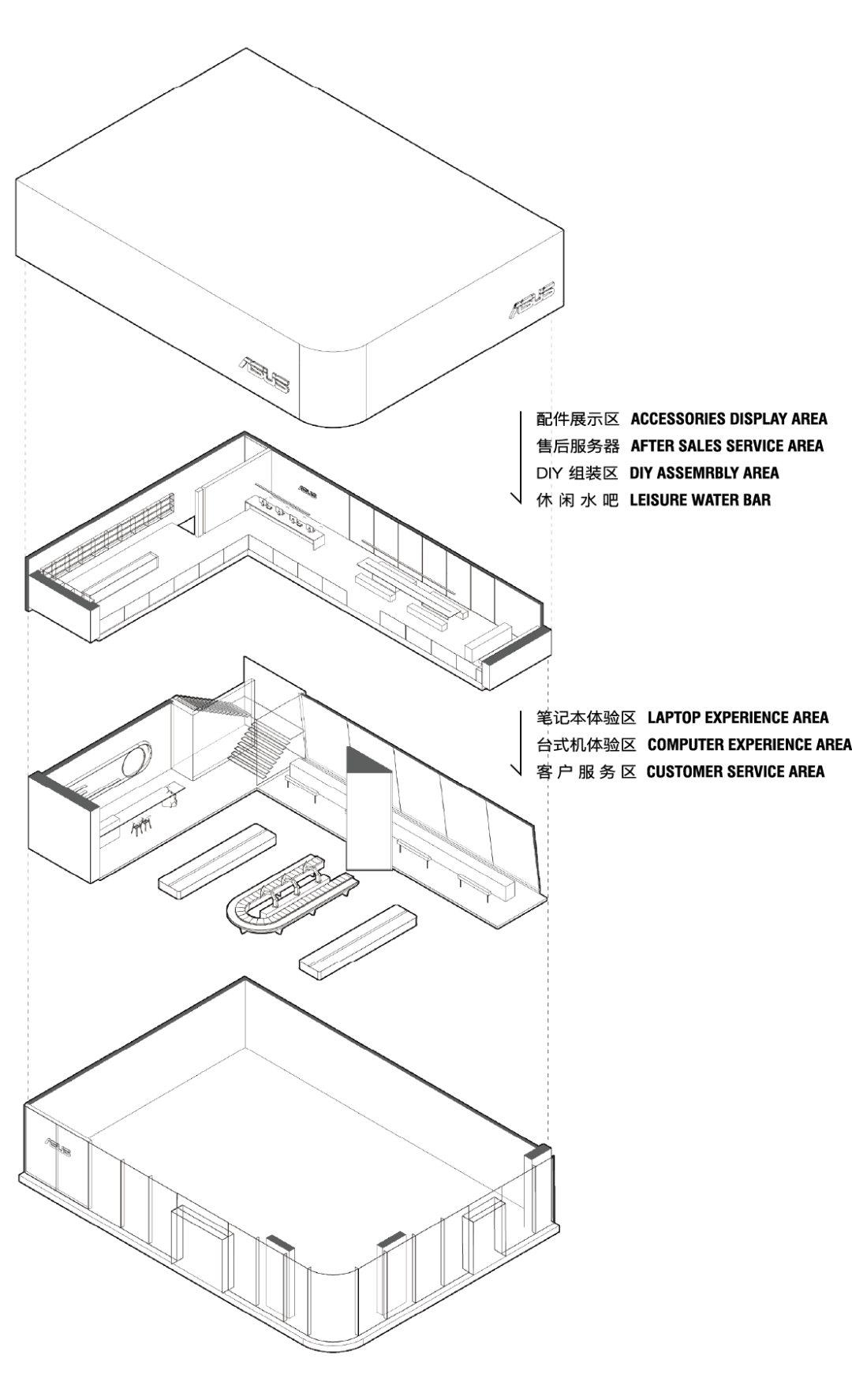 2021 年末,历时 1 年半,格外空间·inDareSPACE 为「 ASUS 华硕 」建立了第三代品牌终端形象系统( SPACE IDENTITY SYSTEM 3.0 ),助力品牌线下直营店布局 ASUS SI 3.0,以具有前瞻性的商业体验策略及全新的空间视觉形象,为华硕未来零售门店奠定差异化和未来感的空间基调。