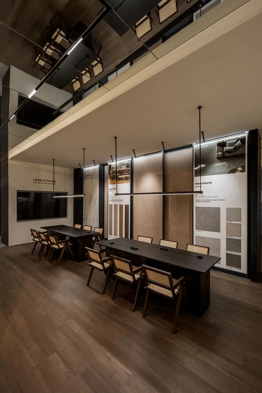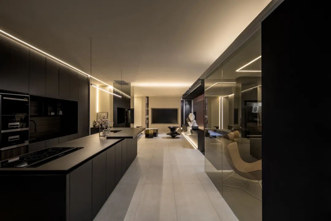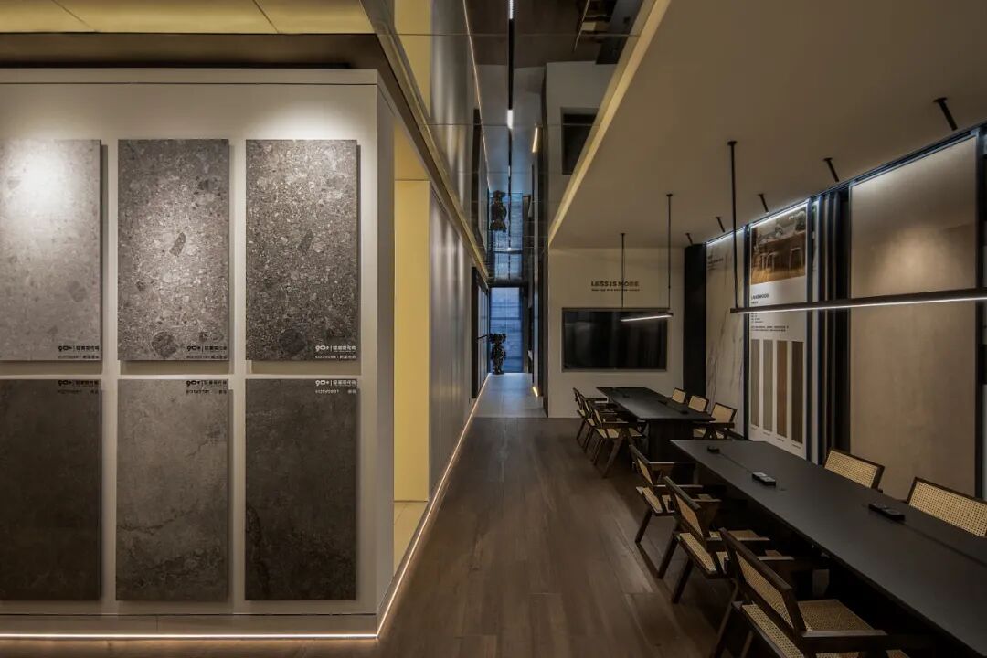 瓷砖产品在空间中的应用体验强化空间氛围与特质,素色瓷砖系列产品在空间中的强烈对比,宁静与动感穿插空间节凑中。