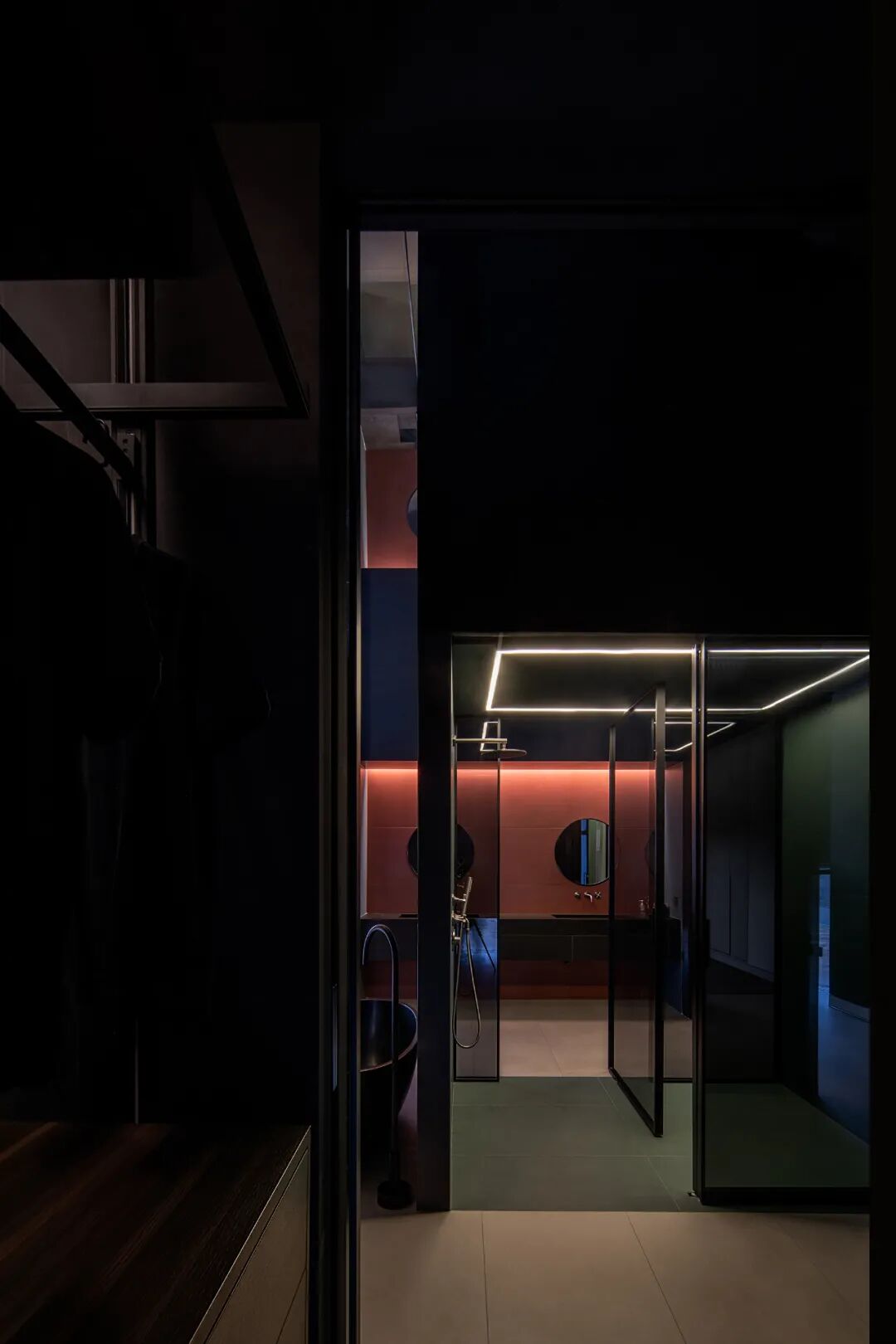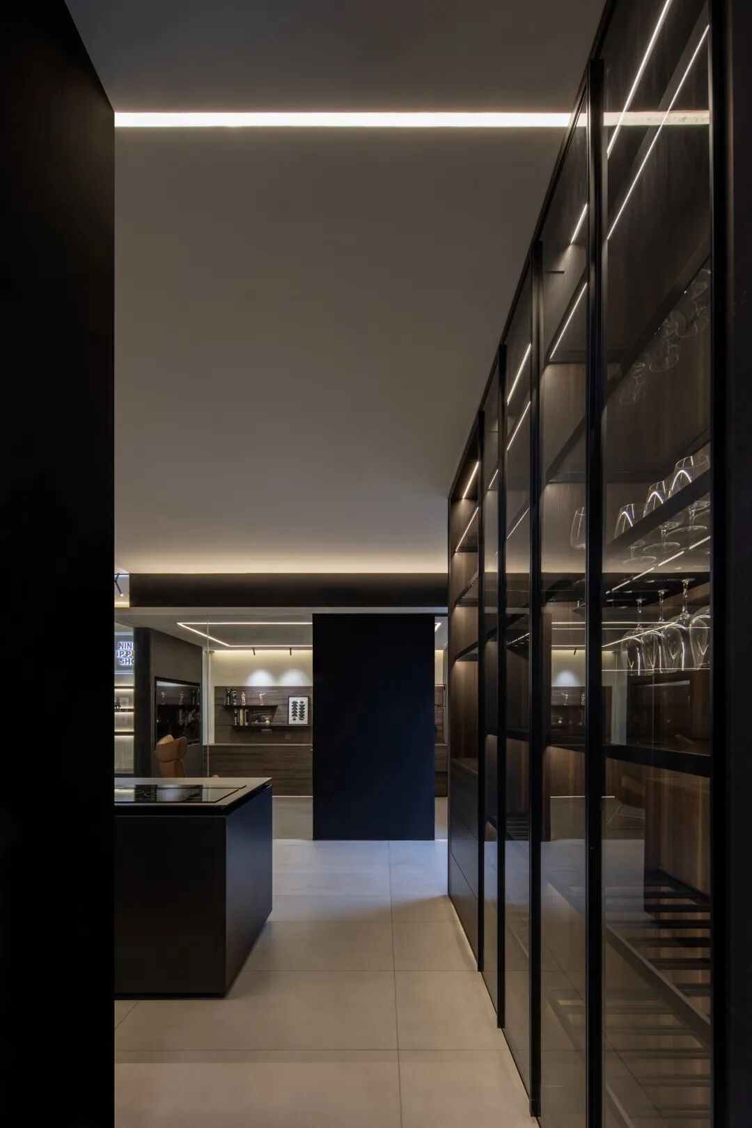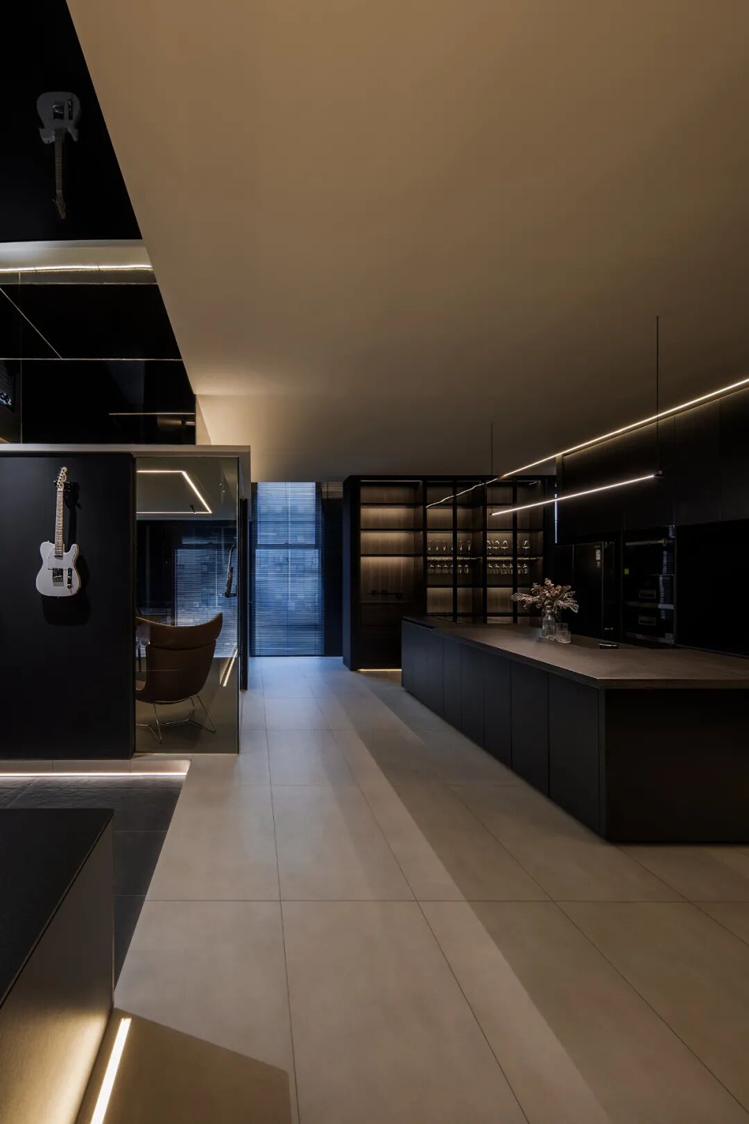 瓷砖产品在空间中的应用体验强化空间氛围与特质,素色瓷砖系列产品在空间中的强烈对比,宁静与动感穿插空间节凑中。