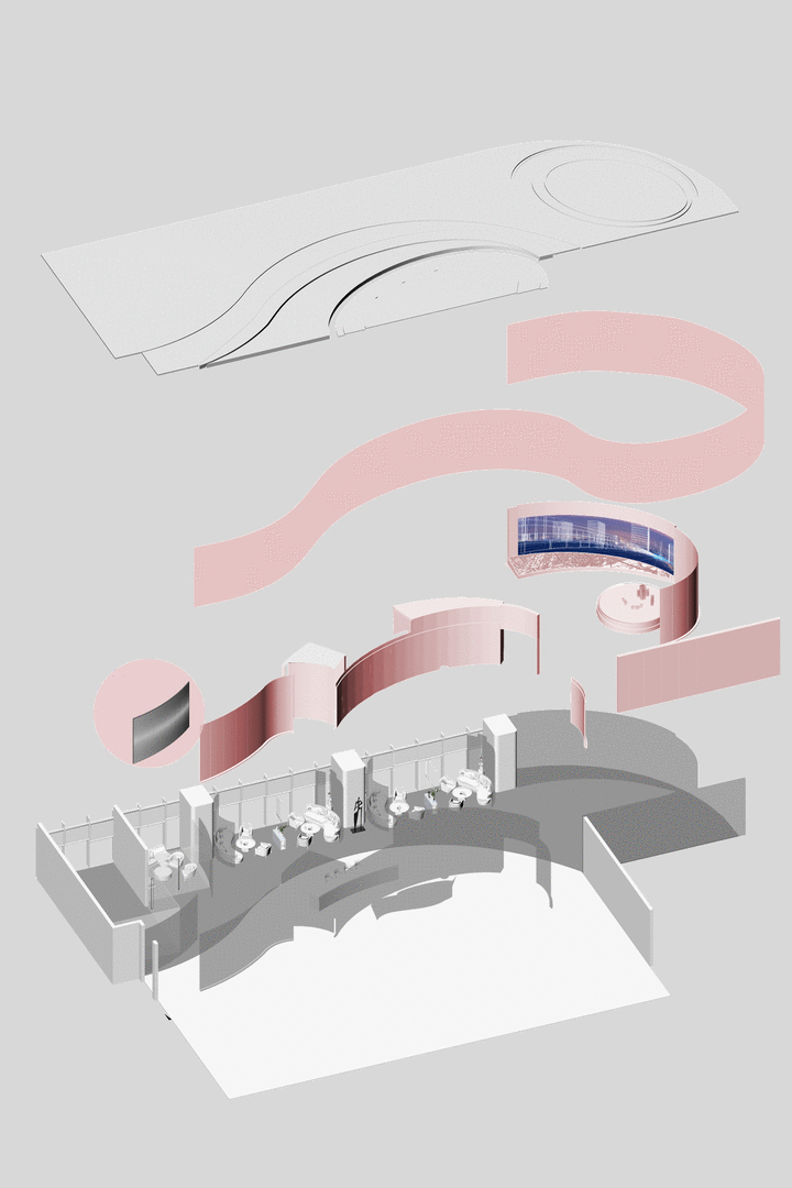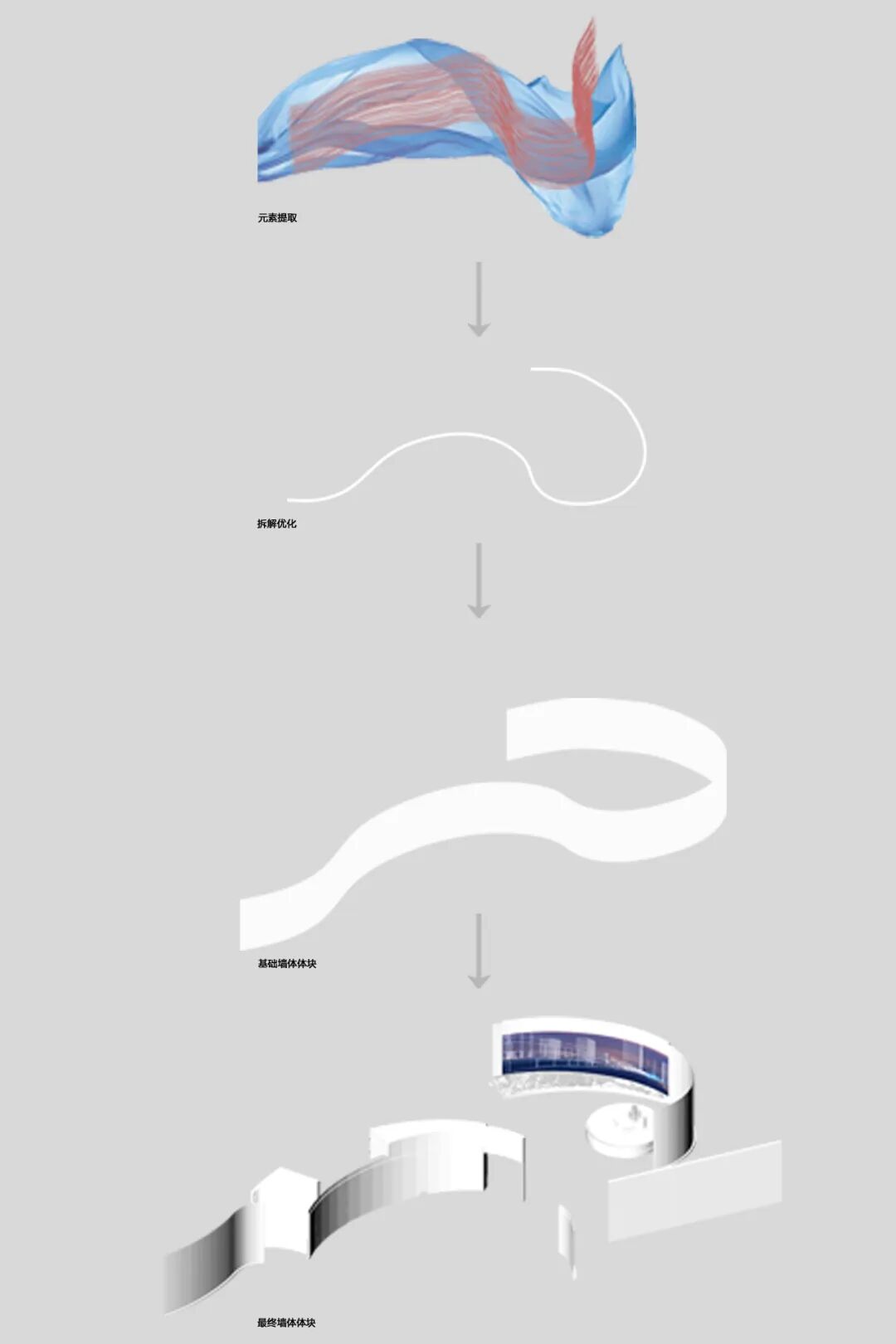 如今,“后浪”承接时代的接力棒,满怀创新精神,奔涌奋斗,追逐梦想。设计师以维系两代人精神的纽带——“纺布”作为设计出发点,现代空间设计手法为针,坚韧不拔、勇于创新的精神为线,编织出艺术独特的品质空间。