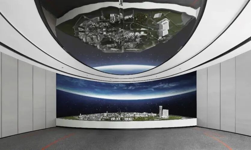 穿过前厅,沙盘区舒展在简洁大气的空间中,镜面的天花倒映着珠江壹号的蓝图,城市新旧更替的序幕缓缓拉开,体现着时代的瞬息万变。