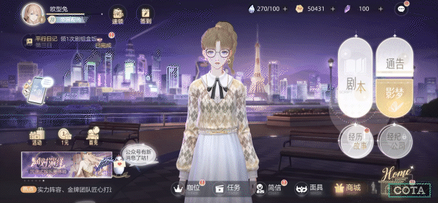 这款游戏的“商城”也是同样的场景化设计思维,进入“商城”时,我们真的可以看到进入一个商城场景的推镜动效: