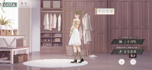 这种推镜动作并不罕见,在这款游戏里也是一种标配,如在“衣柜”界面的入场动效里: