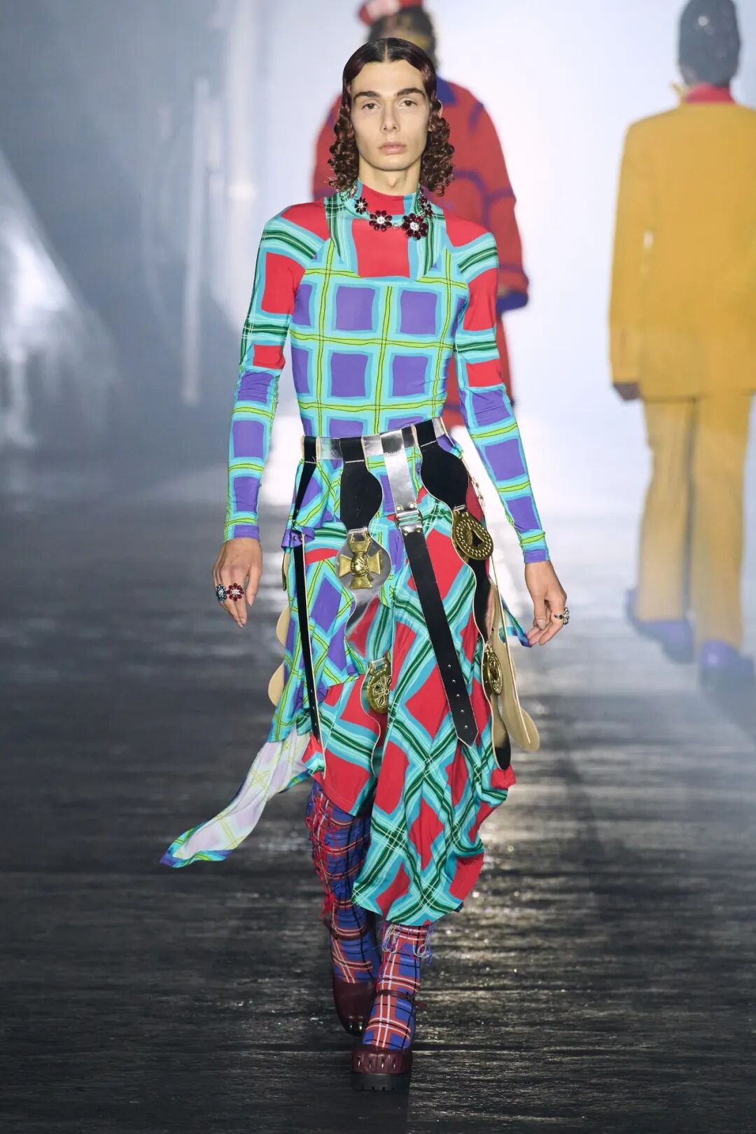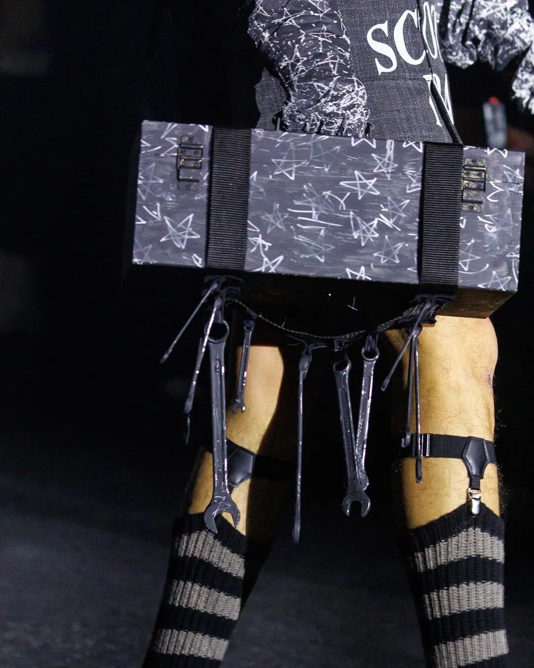 /角色扮演?将夜店文化融入蒸汽朋克设计,颠覆性剪裁、无性别穿搭,充满戏剧性,来自苏格兰先锋品牌奇幻讽刺大秀。
