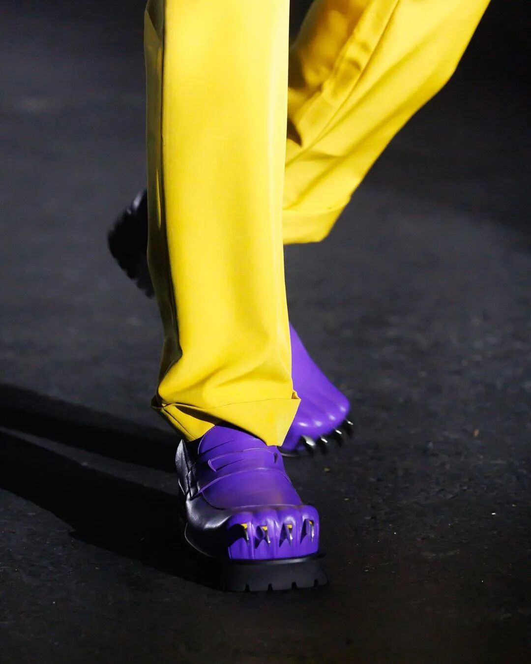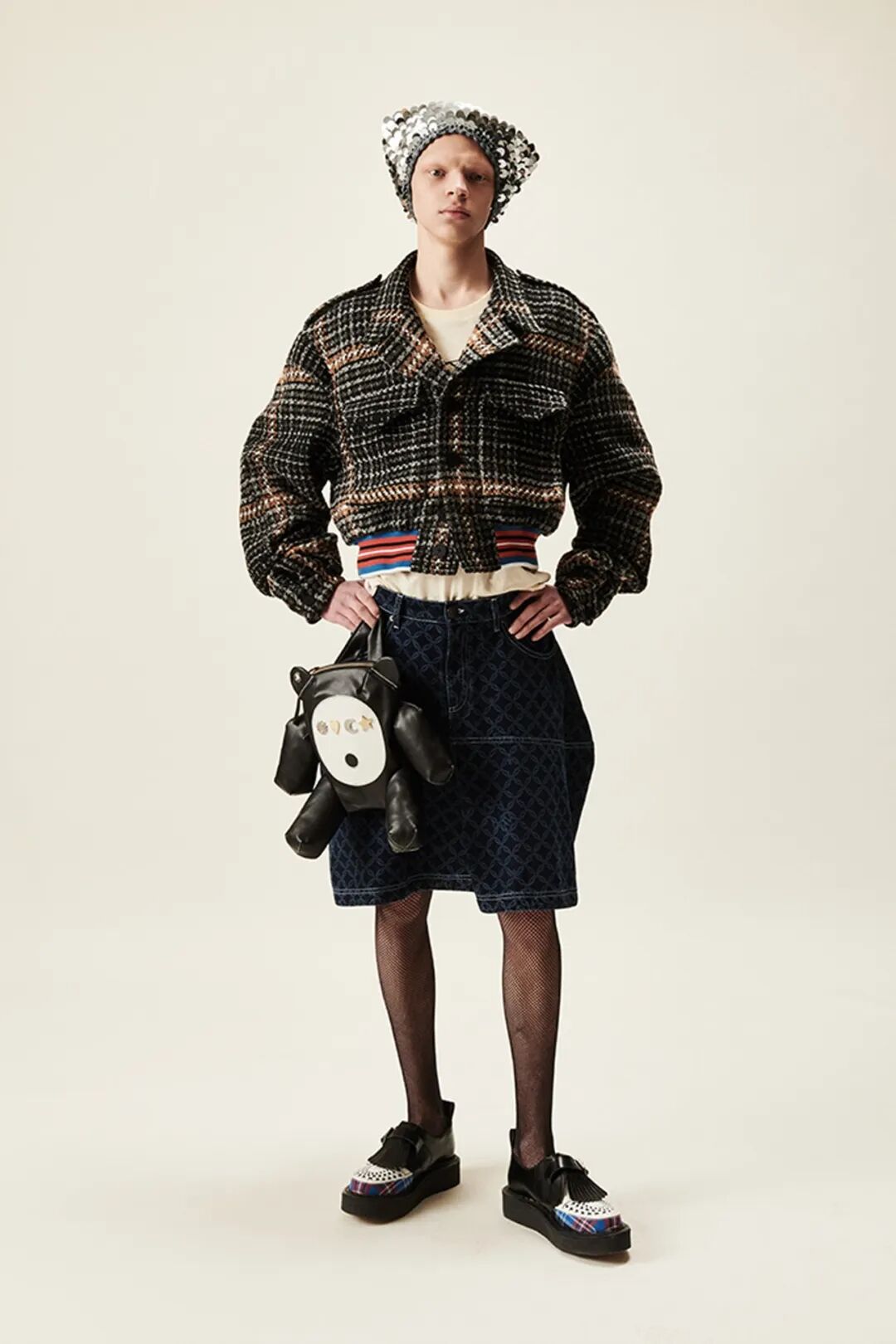 设计师Charles Jeffrey 富有创造力且颇有主见,是塑造无性别风格造型中的佼佼者。品牌崇尚无性别主义,将天马行空的华彩、东伦敦俱乐部风格的奇装异服与朋克精神互相融合,成为时尚界独树一帜的亮点。2020年出圈的可爱“耳朵帽”、叛逆的爪足鞋也出现在秀场中。
