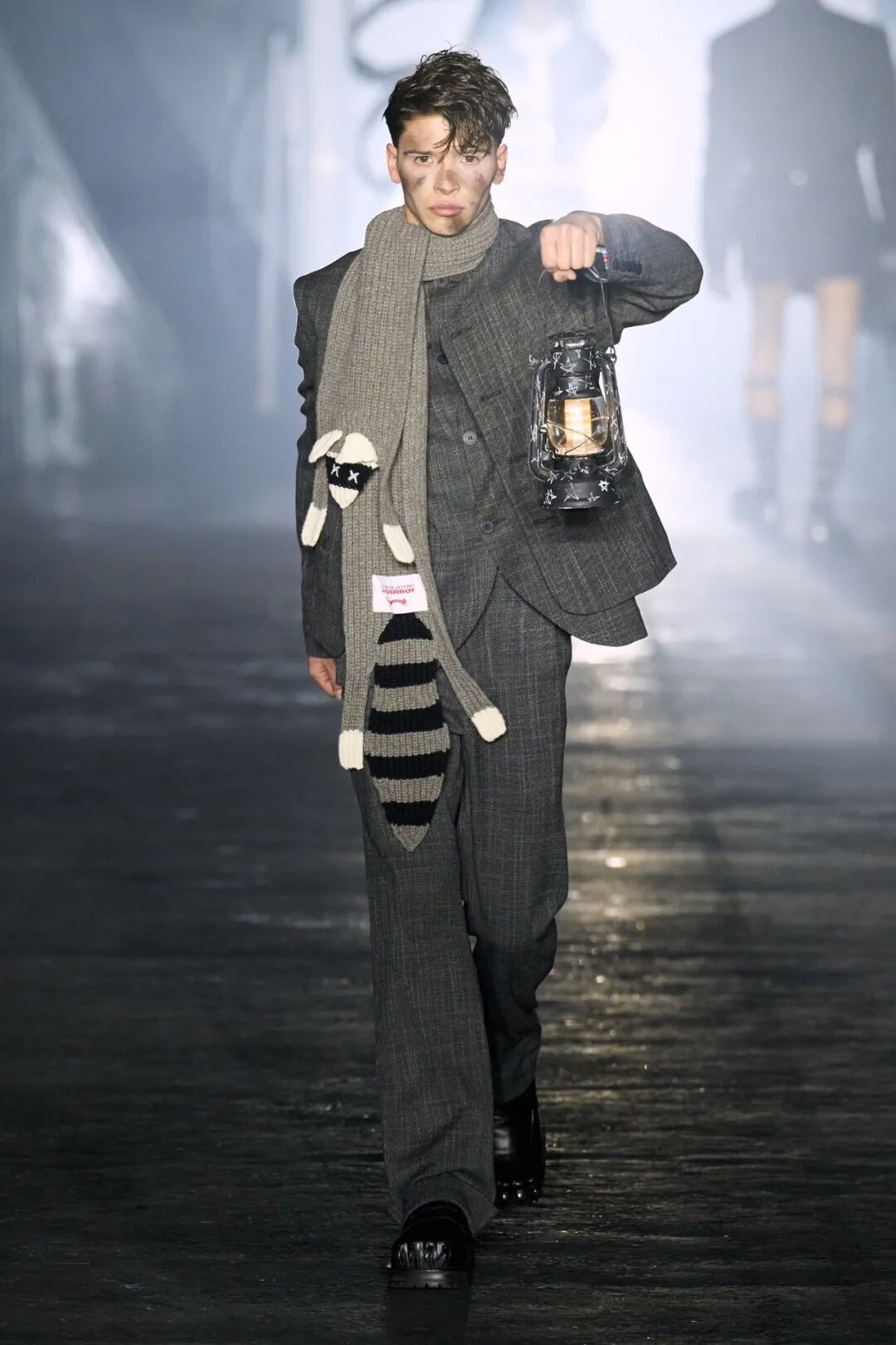 2023 AW系列“Engine Room” 在一个老城区破旧的电车轨道举行,设计师表示该系列灵感来源于 John Byrne1987年的戏剧作品《The Slab Boys Trilogy》,塑造出了一个阶级分明的服装展示。