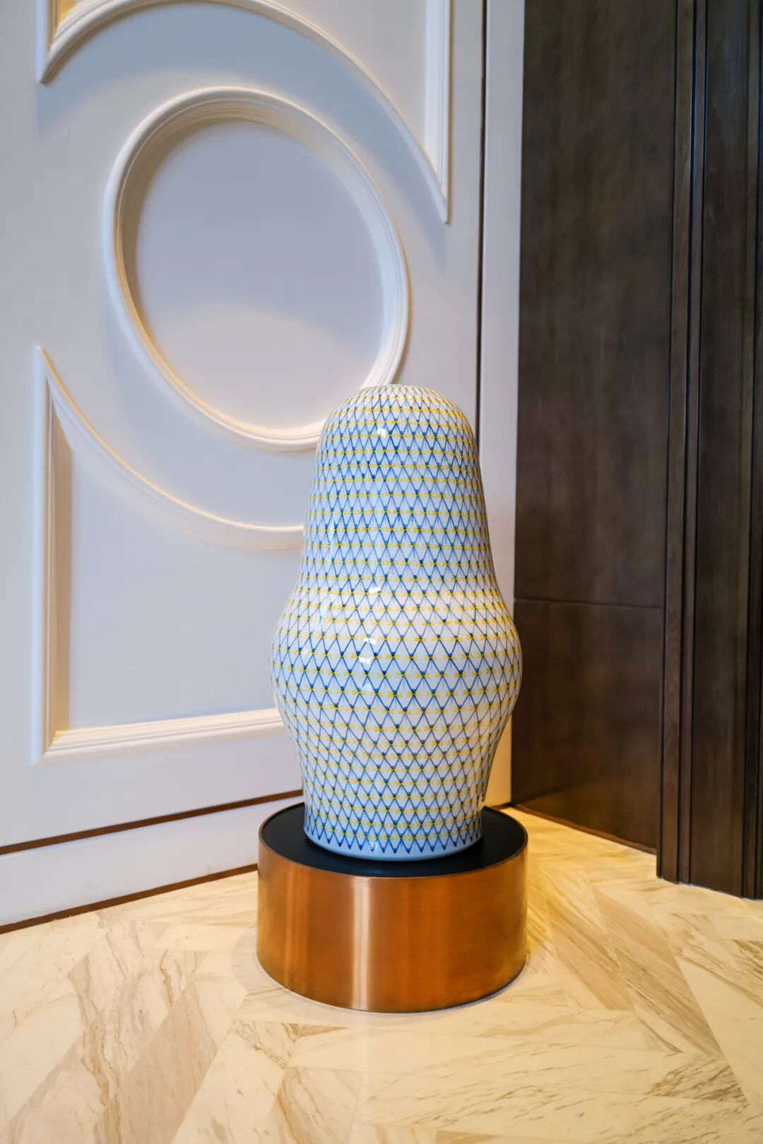 1. 套娃造型的陶瓷雕塑,巧妙交融了中国传统的陶瓷工艺与俄风的套娃。机智、诙谐又不失端庄感。