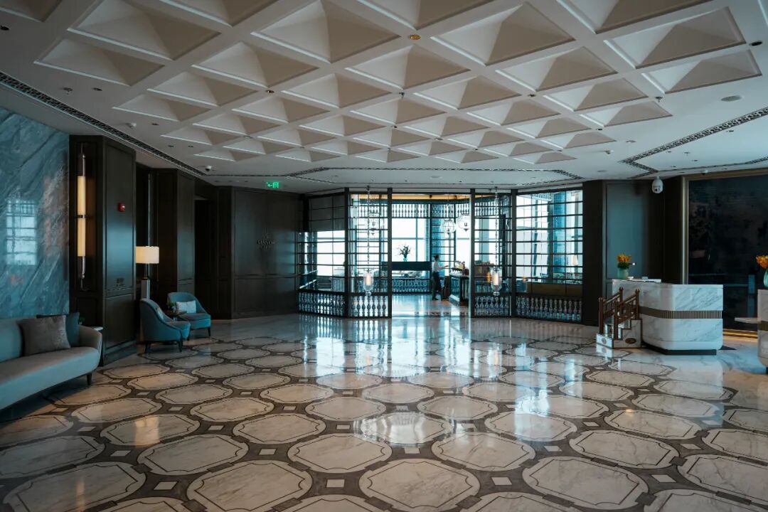 ▲ 丽思卡尔顿在多地的建筑都致敬了自然元素,例如浦东丽思卡尔顿身处于建筑大师Cesar Pelli以水晶杆为灵感创作的IFC塔楼。而哈尔滨丽思卡尔顿所处的玻璃塔楼的构造,灵感源自酒店直面的松花江在冬日的冰裂(操刀酒店所处的“哈尔滨富力中心”建筑的是创立于1915年的美国老牌事务所LEO A DALY)。