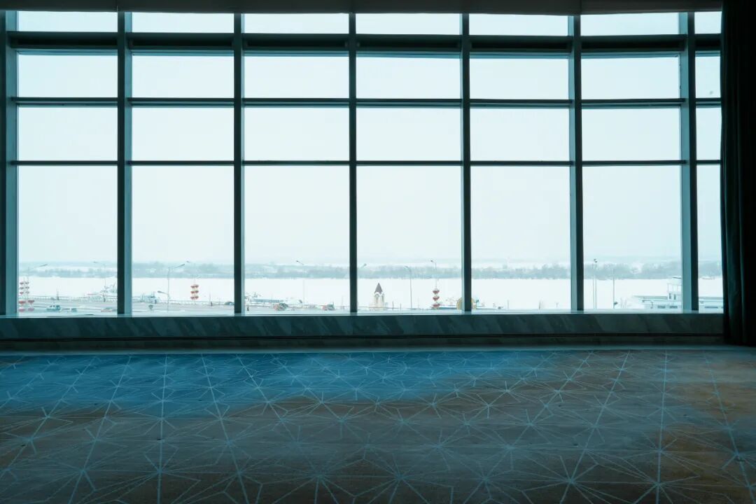 另外,位于酒店低区的大宴会厅有着一长排正对松花江的落地玻璃窗,尽管酒店高区同样能将江景一览无余,但亲近松花江、尤其冰封时的纯白系松花江的感觉,真的很震撼。