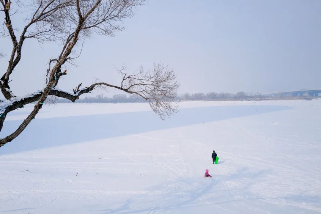 尽管不出客房就能把松花江及冰雪大世界美景尽收眼底,尽管户外气温低过我的预期。但还是没能抵挡我实地朝圣他俩的决心,当然,这也归功于酒店极其便利的位置,下楼过个马路就能踏上冰封的松花江、打车十块钱就到冰雪大世界。