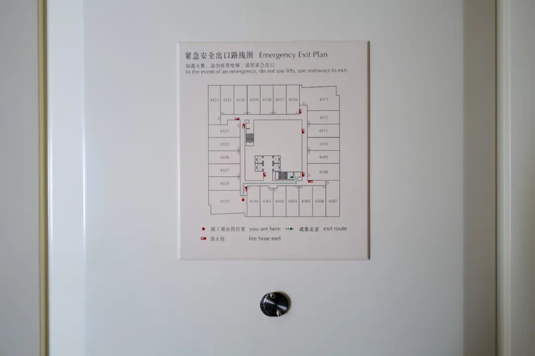 ▲ 我尤其喜欢根据客房门背后楼层安全图的质地、图形、字体来感受一间酒店的美学态度和质感。