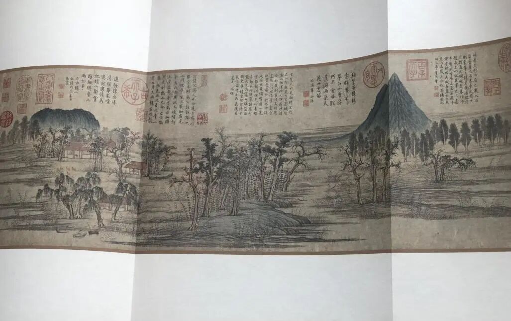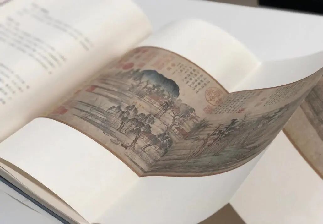 横幅的《鹊华秋色卷》,现被收藏于台北故宫博物院。“幅前画古树杉椿榆柏之属丛翠,汀洲沙脚......小舟四五出浅港,轻微若花须,人才黍米耳。”这句评论非常细致地描述了画中树木与沙汀的景色叠层,又再现了古人划着小船外出务农的情形,动静结合,颇有生机。画中的细小人物藏在树影婆娑间,不仔细看很容易忽略,康俞先生将他们比做花须和黍米,显得非常有趣。