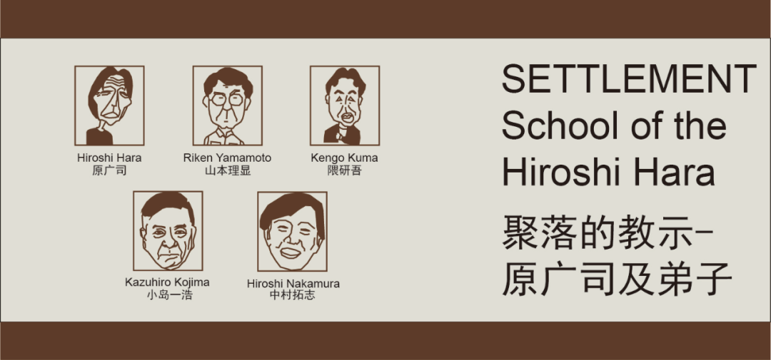 前言:2010年3月SANAA获得普利兹克奖,同年9月在上海世博会期间,上海建筑师协会邀请妹岛和世赴同济大学演讲,至此国内掀起了对日本建筑师的“认知热”和“学习热”。笔者在国内对日本现代主义的认知最早是从安藤忠雄(中国建筑工业出版社的《安藤忠雄》、《连战连败》)开始的,之后又购买了中国建筑工业出版社的《丹下健三》和《黑川纪章》,之后了解的是伊东丰雄、SANAA和隈研吾。众所周知,桢文彦、矶崎新和原广司被誉为东京大学的“BIG-3”。原广司及其弟子在日本现代建筑的发展当中又是怎样的支流呢?承接上文《日本现代建筑承上启下的建筑师新陈代谢派:桢文彦、黑川纪章、菊竹清训》,本文将山本理显、小岛一浩、隈研吾、中村拓志这五位建筑师全部归到原广司及其弟子这一支流(图1),着重通过对各位建筑师作品和思想的介绍以期理出这一支流的发展脉络,并分别阐述他们的作品是如何从“聚落”当中得到的启发。