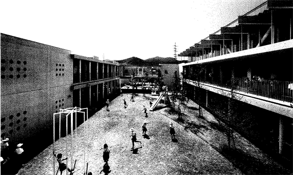 图22:山本理显设计的东云集合住宅裙房的幼儿园和商业街-摄影:海上的香格里拉