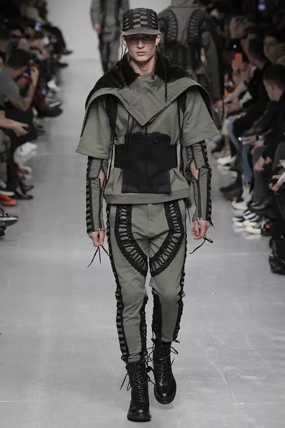 Gucci2018秋冬秀场,以介于生物与机器混合体的"赛博格"概念为灵感,在宛如手术室的秀场空间,演绎时尚的异质进化,突破既定界限,展现Gucci的时尚赛博格。