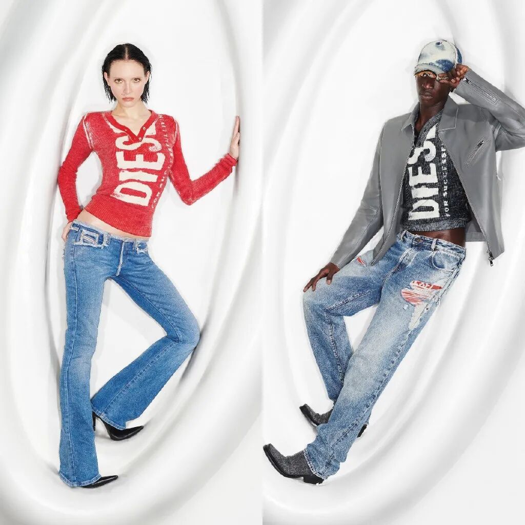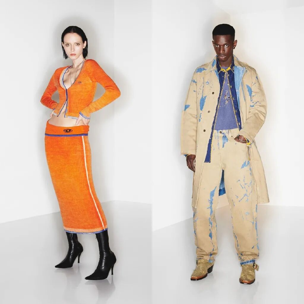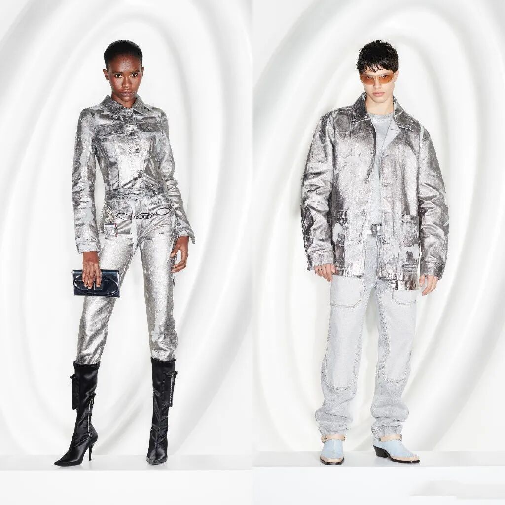 DIESEL 2022 早秋系列值得关注的服装流行趋势元素:迷彩印花、漆皮元素、赛车元素、低腰设计、不规则剪裁......