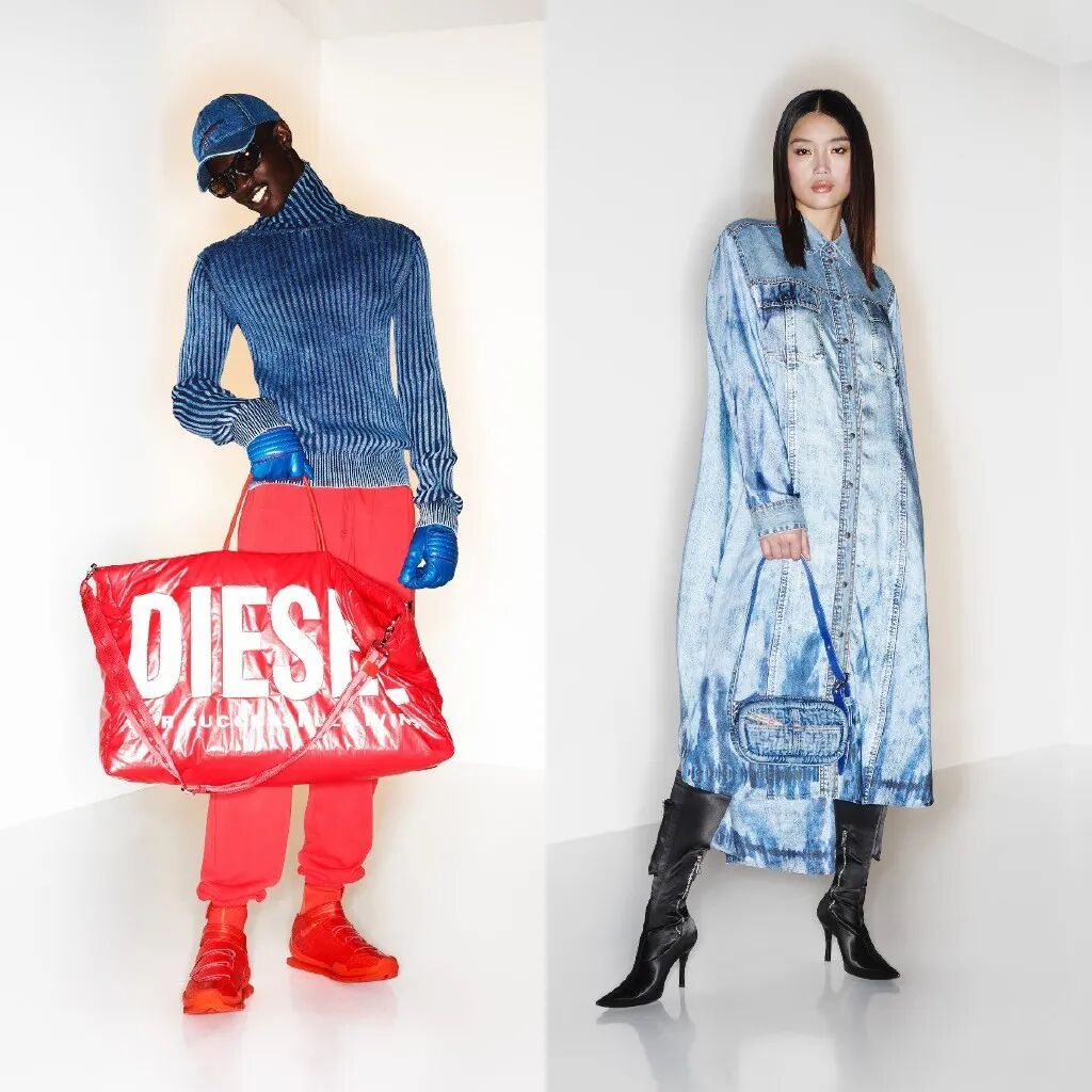 Diesel Pre-Fall 2022 | 剪裁和造型方面可以明显地看出设计师的手法,同时也可以看到他创造的新品牌 LOGO 也多次运用在配饰中。当然,DIESEL 最重要的设计元素牛仔也在 Glenn Martens 手中获得更多发挥。