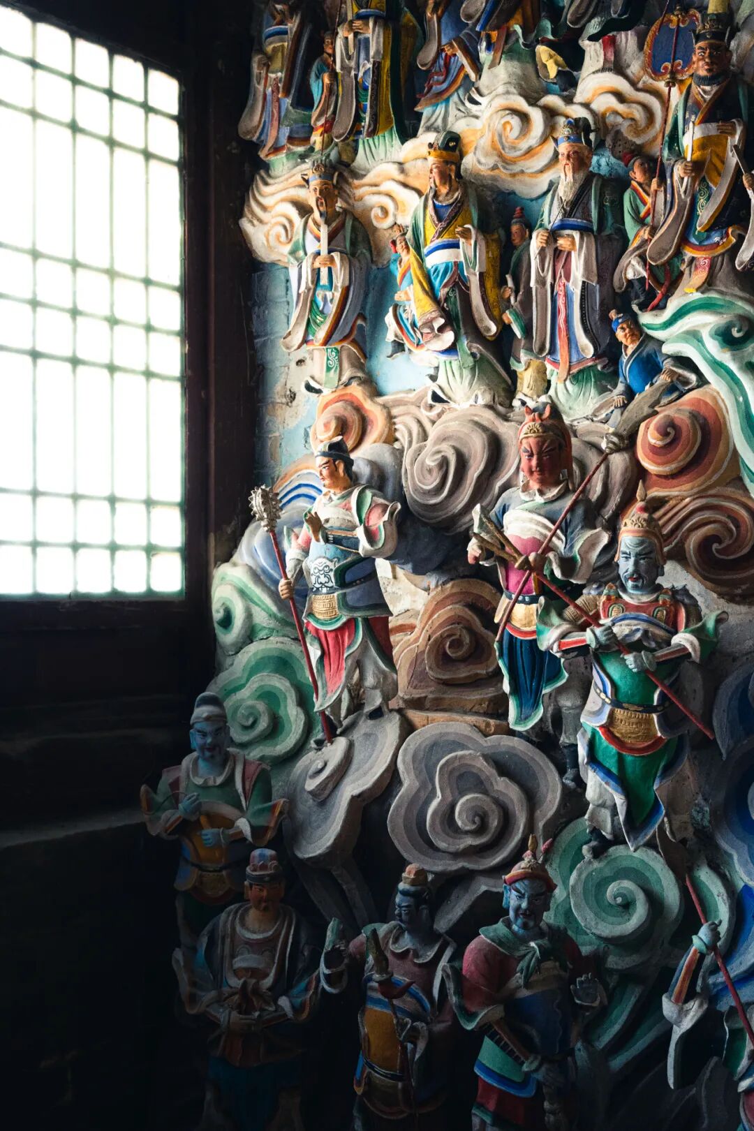 还有山顶的万仙阁,远远望去,便被满墙飞舞的悬塑人物所惊艳。