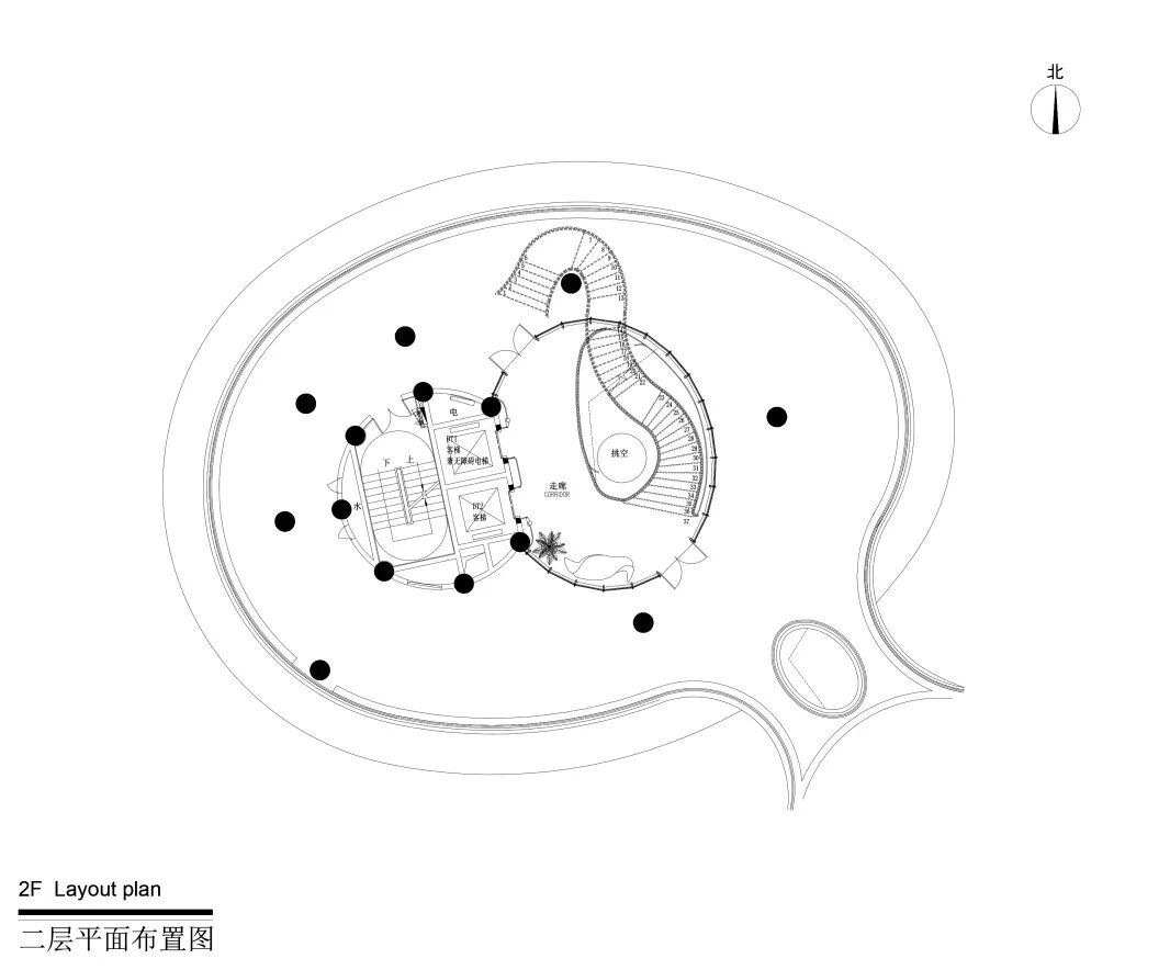 曲線形態的藝術樓梯宛如一條金色的紐帶蜿蜒而上,帶我們探索更多奇妙的空間。