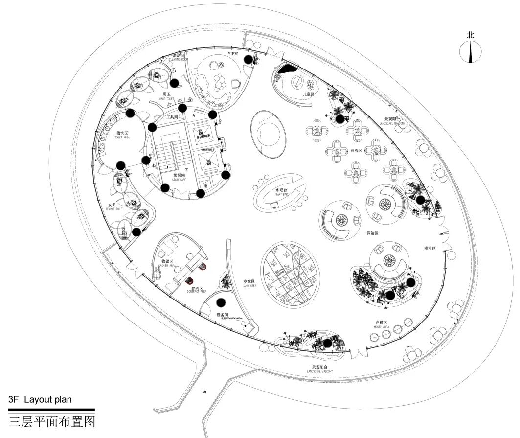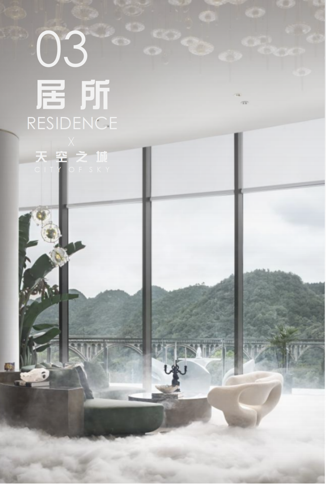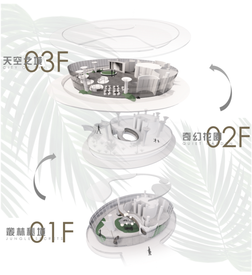 三層圍繞天空之城主題元素,分別為天空之所,神奇之樹,瀑布奇觀將整體營造成一個富有自然,且具有未來氣息的空間氛圍,引領我們體驗別樣的空中城市。
