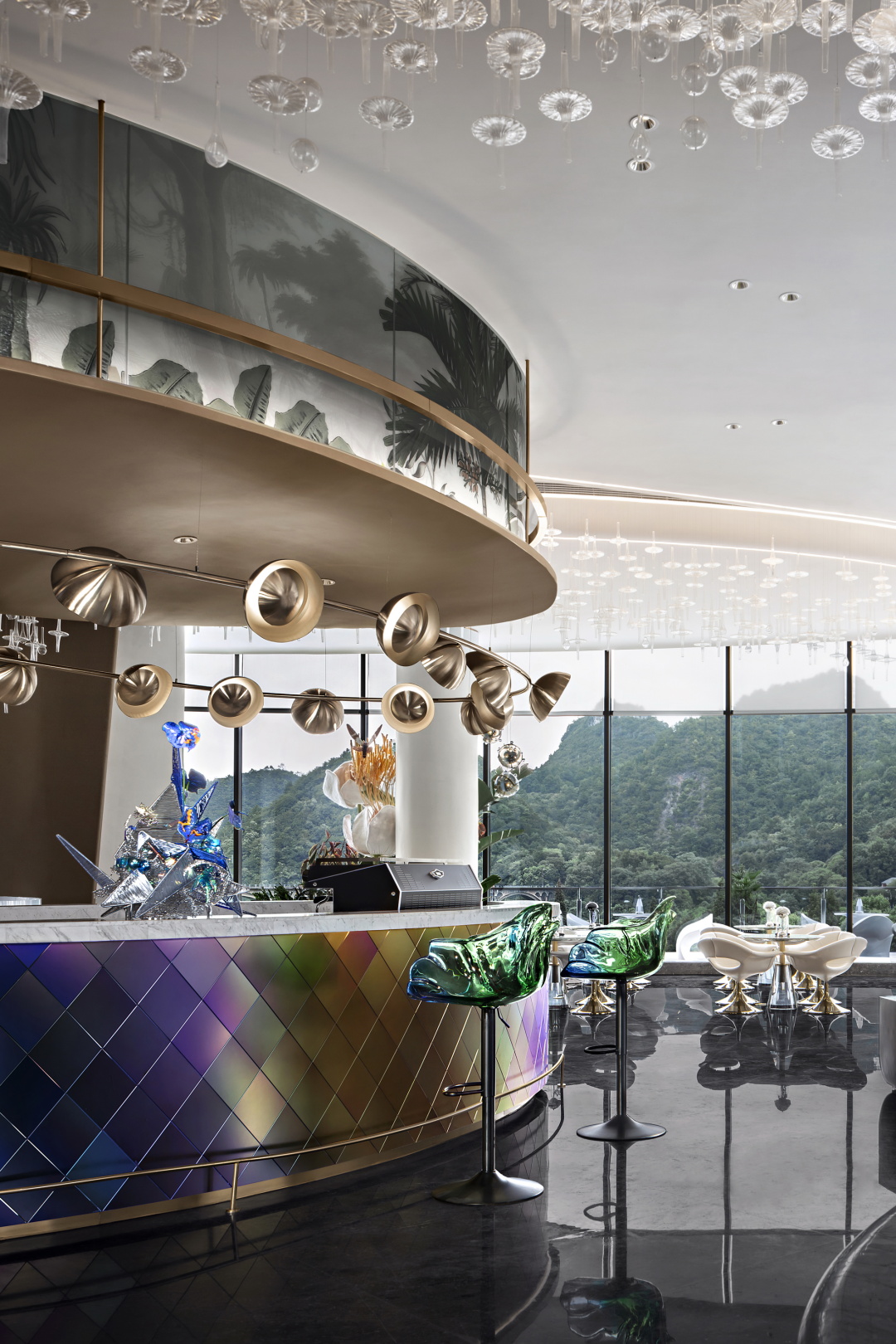 一層圍繞奇幻森林主題元素,分別給予空間瀑布奇觀、未來之樹、林深見鹿,三個極具特色的氛圍營造。將整體營造成一個富有森林氣息的自然奇觀的別樣空間, 引領访者去探索這充滿奇妙旅程的絢爛空間。