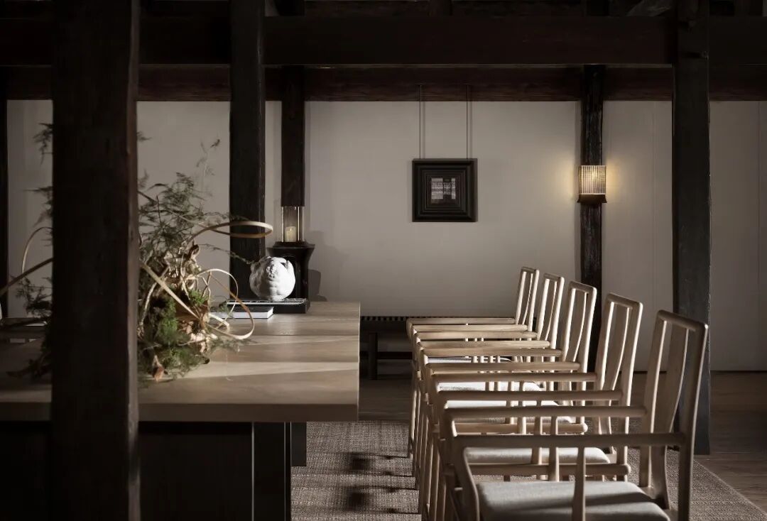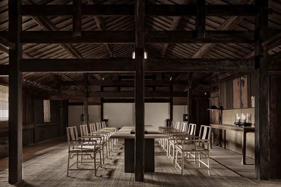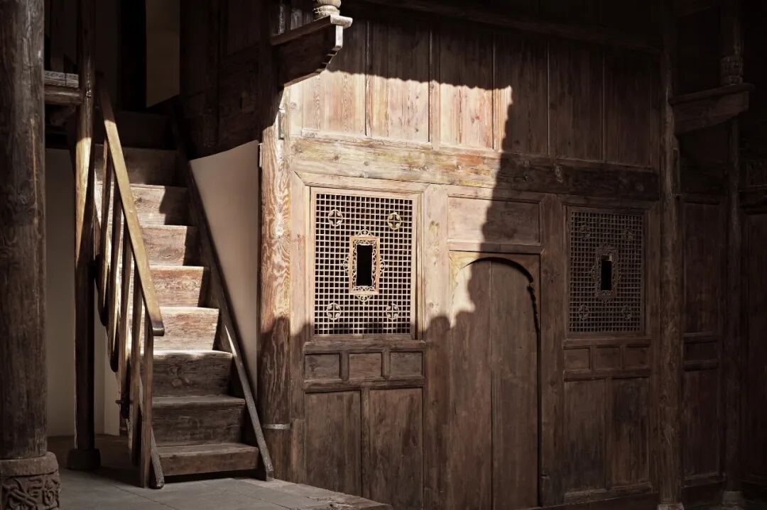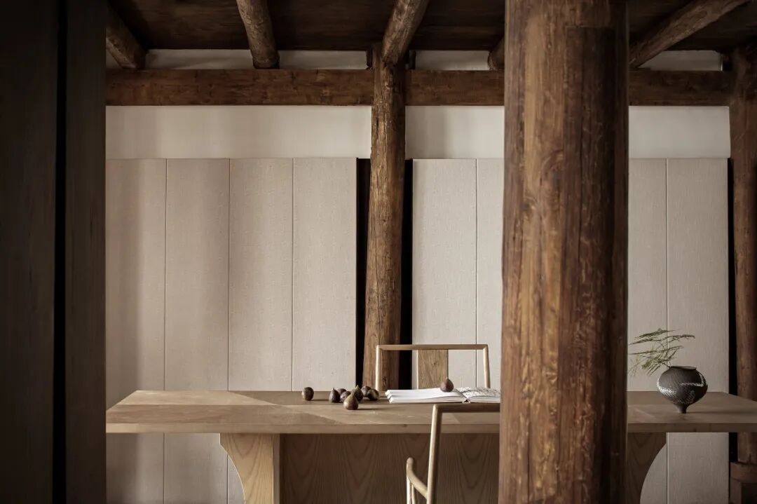 因古建筑面积和高度有限,设计师于室内设下沉空间,增加了层次的丰富性,扩展了空间的尺度。浅色的材料、古朴的家具,配合原貌、原位保存的古物件和旧装饰,仿若历史与你隔空对话,天地苍茫、时空瞬移。