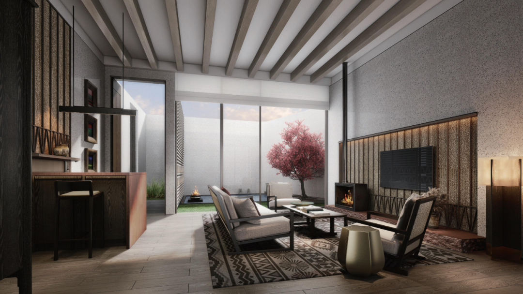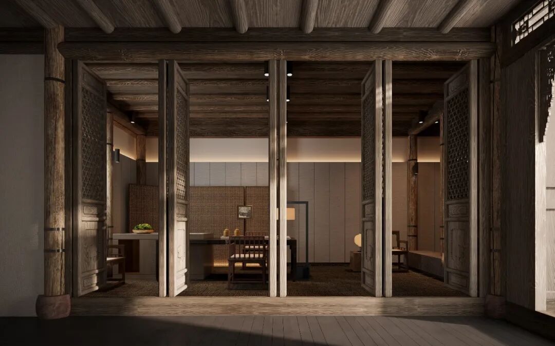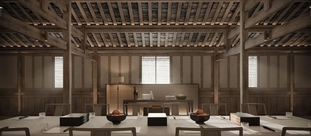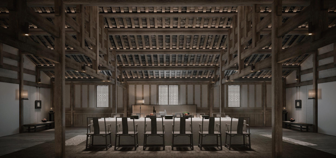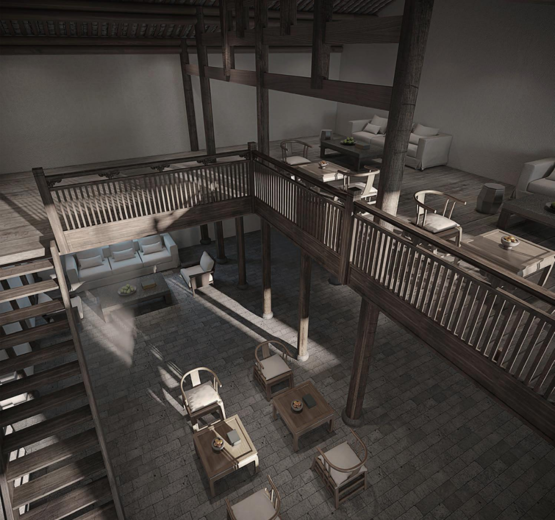 因古建筑面积和高度有限,设计师于室内设下沉空间,增加了层次的丰富性,扩展了空间的尺度。浅色的材料、古朴的家具,配合原貌、原位保存的古物件和旧装饰,仿若历史与你隔空对话,天地苍茫、时空瞬移。
