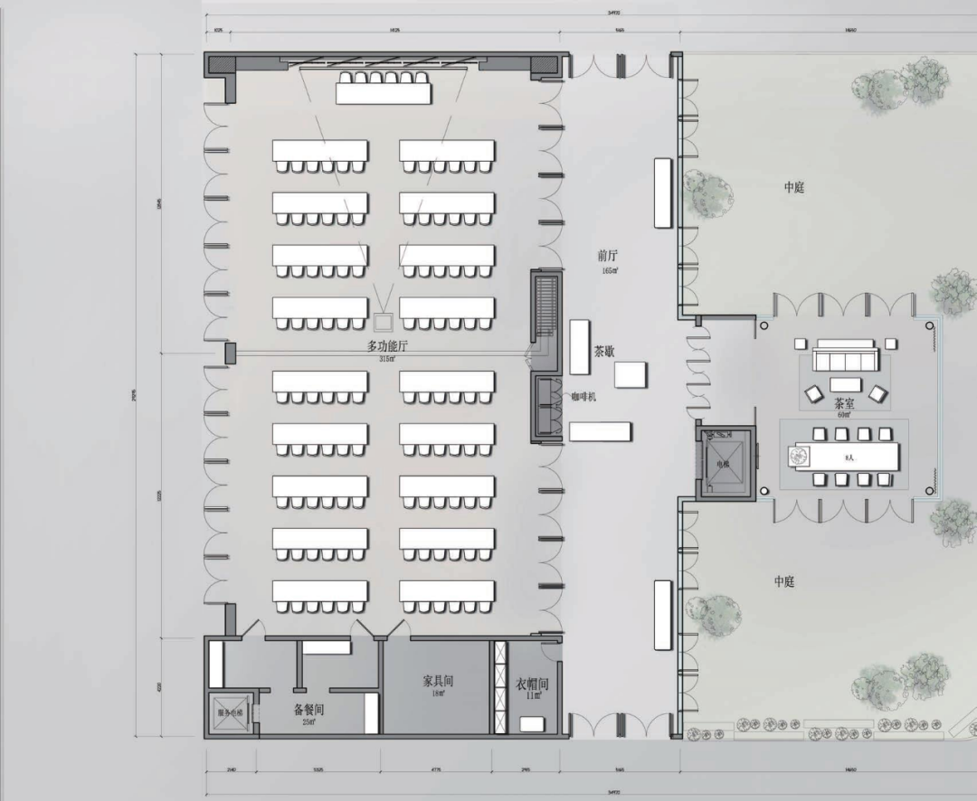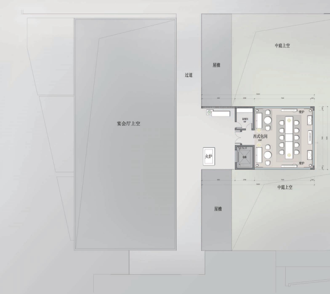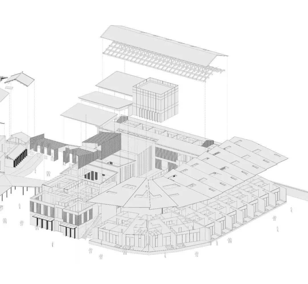 设计以府邸为序厅,保留历史建筑的灵魂,依其原貌进行结构修复。拆除无用的隔断,还原建筑的窗扇并将屋架露明,用玻璃瓦替换部分瓦片,空间便能迎接西昌阳光的照拂。