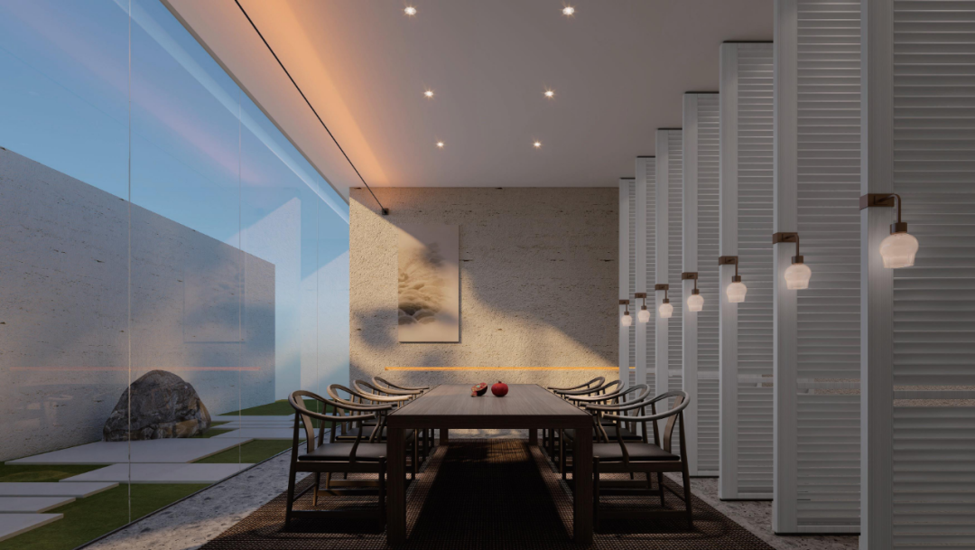 首层的中餐厅设有与室外连接的软塌,在终年17度的西昌随时开窗纳景,自然的芬芳间享受美食
