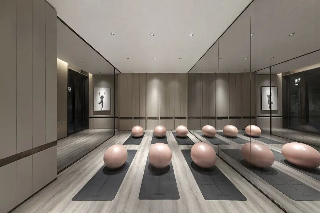 瑜伽健身房三面景观围绕,柔和的灯光营造出轻松宁静的氛围,达到天人合一的意境。