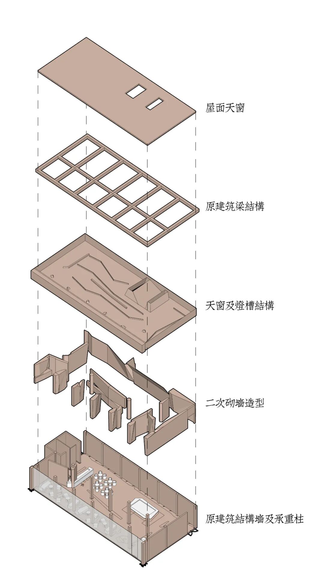 自然中有天光、火光与波光粼粼,但并不存在人工光;前者不是单一的,是在变幻的,伴随时间维度的加入,都将成为打造空间的元素;这是区分他们的关键因素,所以设计师将人工光源隐藏起来,并命名为藏光行为。