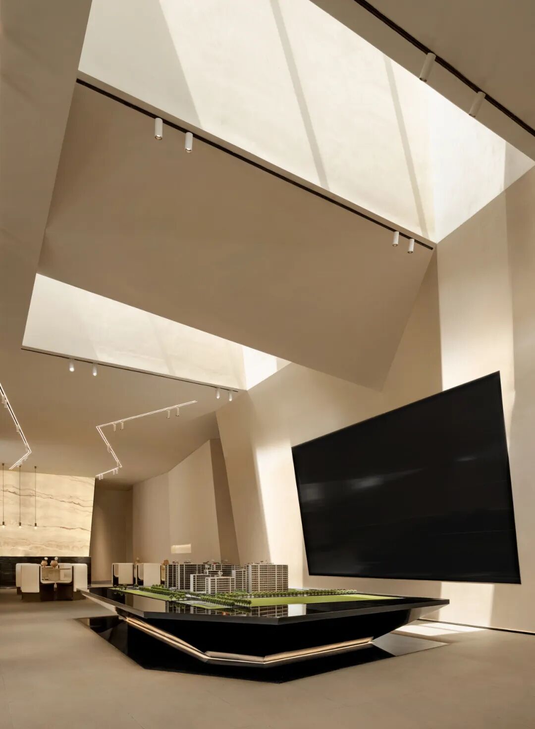 空间是光的容器,两者相遇空间的情绪便产生变化,也触动着人的情感。沙盘空间被上方的山谷裂缝中投入的日光所照亮,为观看与交谈创造了一个平静与引发思考的区域,以及一个可以聚焦的社交聚会点。
