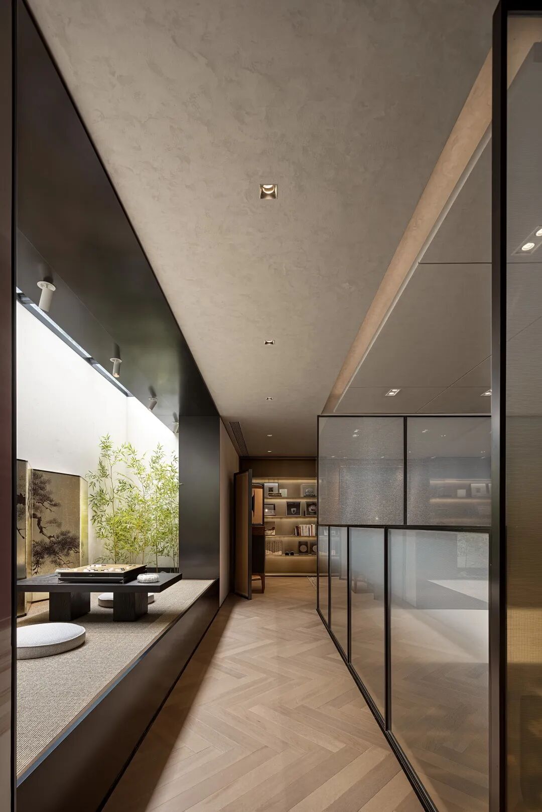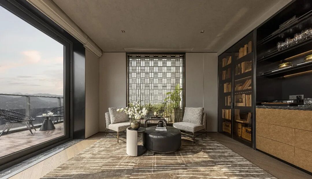 现代派大宅的极简美学贯穿于书房和下棋区,长长的廊道里又见一方闲逸潇洒的新天地,氤氲满室。
