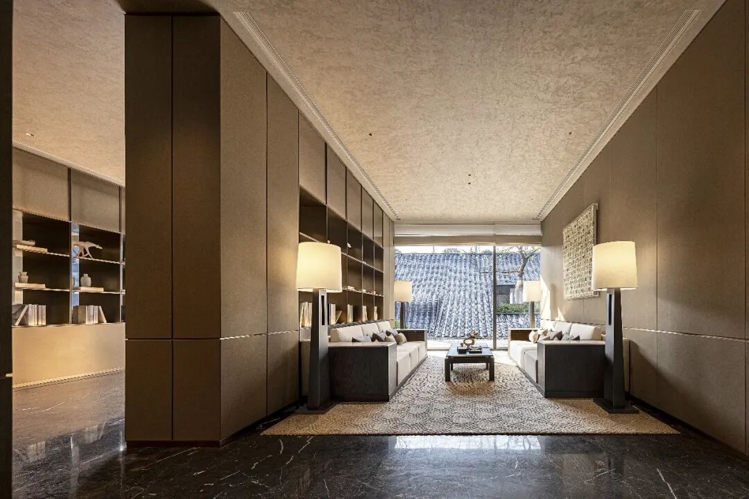 光影流连于湖岸大宅内,在古城的城市肌理和开放格局中,逐渐形成空间的渐次递进。古木逢春,鱼翔浅底,安澜携千年的历史文脉在此驻留,自享“滨水而居,静水流深”的园景生活。