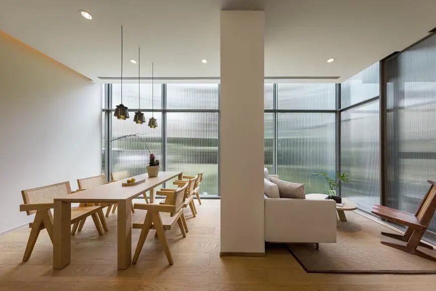 少即是多,越简练的线条越能走进灵魂的深处。抛弃复杂的造型,立面的大量留白安静质朴,让心归无,这是写在自然里的诗,以其独特的美感给予人空间上的感知:空间不仅仅是一个容器,它被人与时间赋予不一样的情感和意义,在生活中散发出永恒的美感。