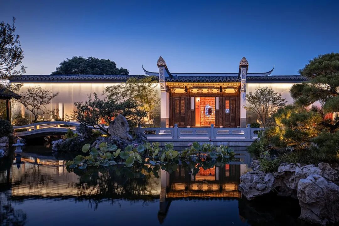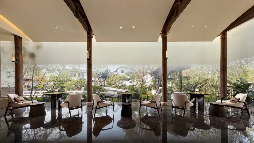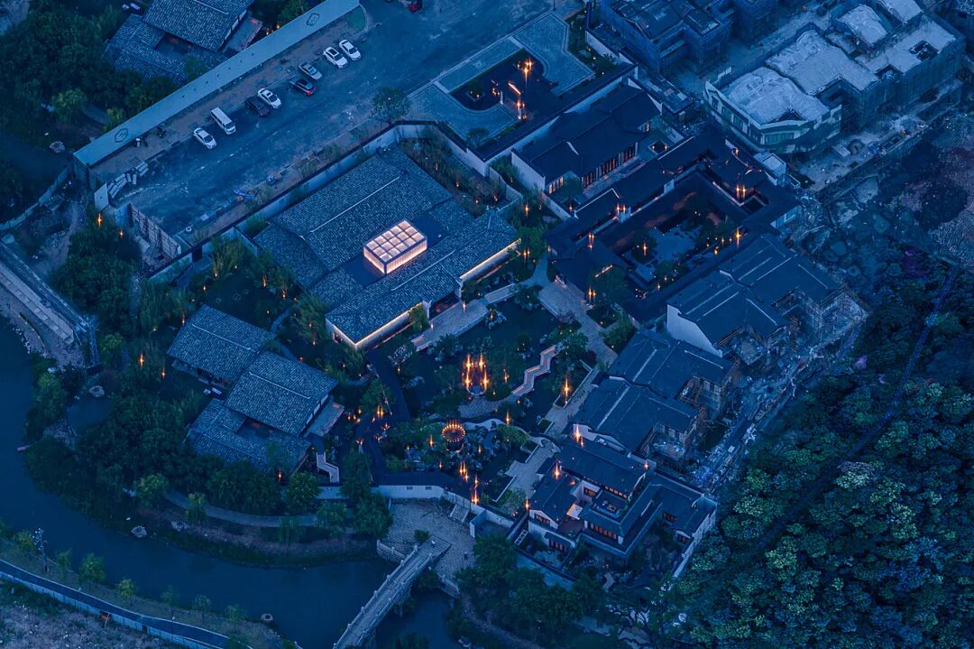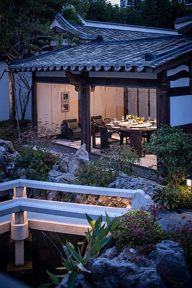 建築掩映在密林小徑之中,在動靜、進退、開闔的中國園林裡,室內的光景在人的移步變化中迸發出強烈的引人探索的力量,空間體驗的驚喜鋪墊一步步拔高。