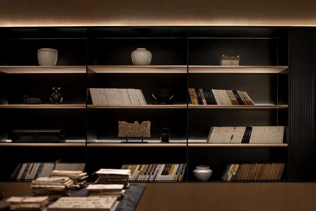 除以新式手法重新寓意新事物,空间内还置有地方性的茶具,散发着历史的韵味,橱窗里的宋瓷,无论是低透明度的色彩,还是光滑细腻的材质,这等设计工艺彰显著属于东方艺术特有的静谧素雅