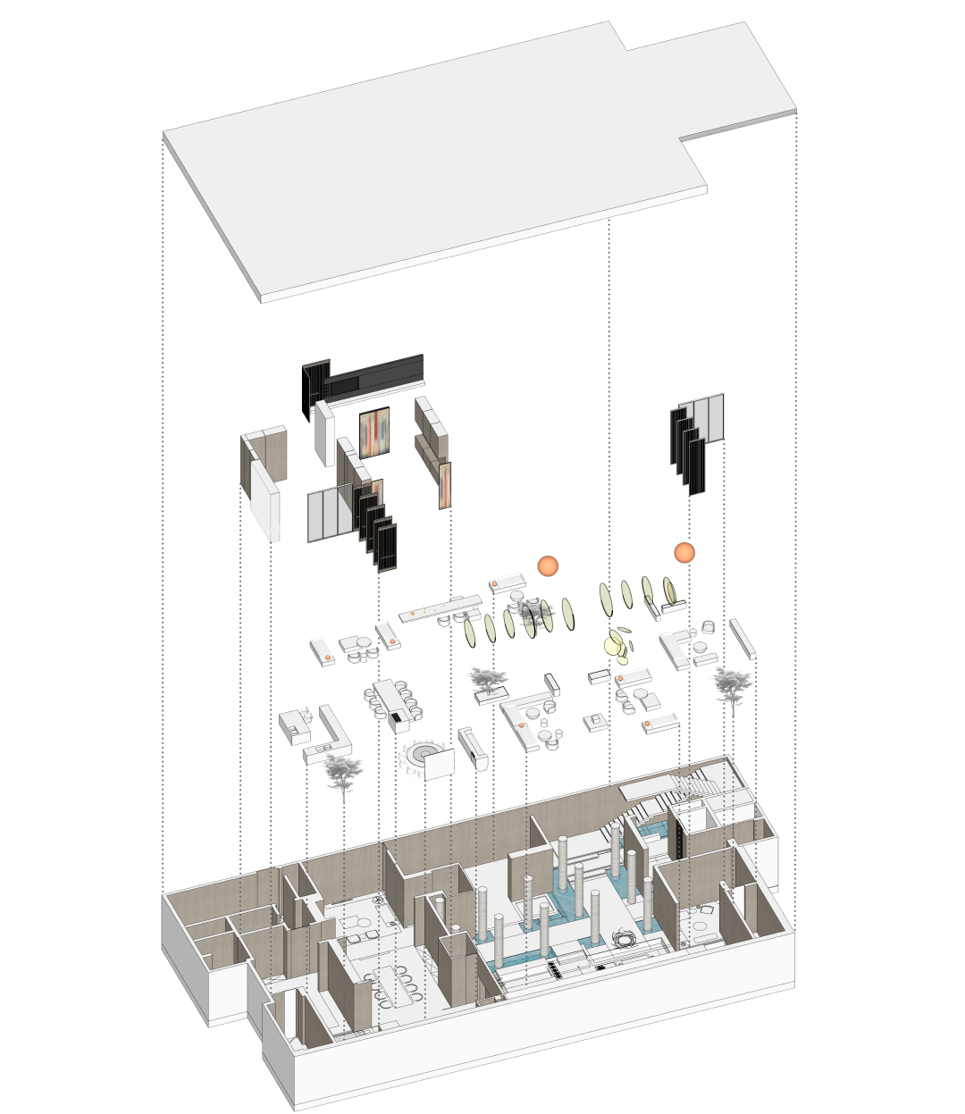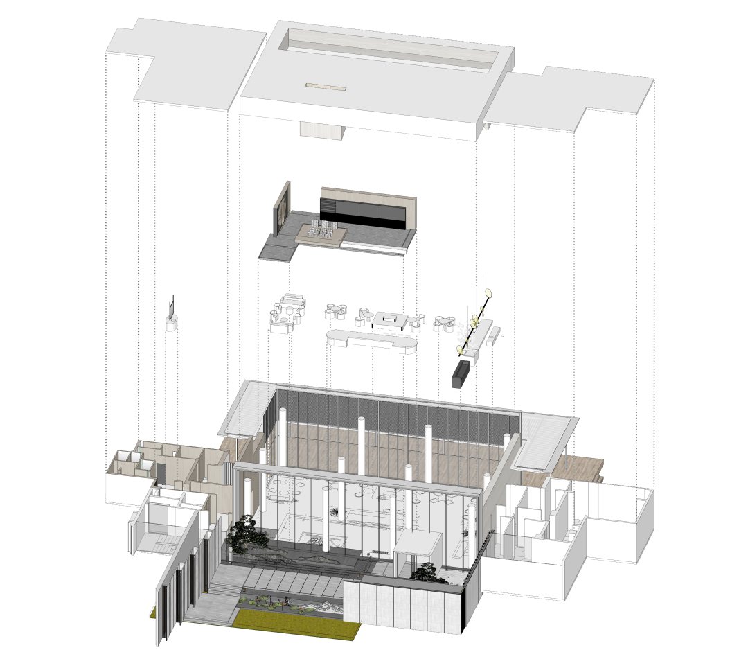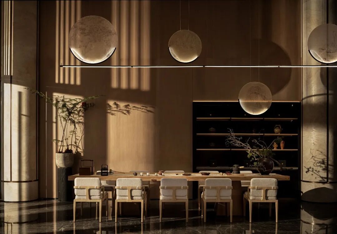 设计团队承袭宋代美学理念,尊重传统并用理性思维加以提炼与优化,在设计逻辑中将“宋雅物道,禅宗至简”的主题嵌入进空间内,文化的复苏和美学的觉醒,进阶空间的功能需求与回归东方的心理需求,敬畏自然,留下谦卑,进一步凸显宋人生活哲学,打磨出一座包含“宋雅文化”的诗意栖居。