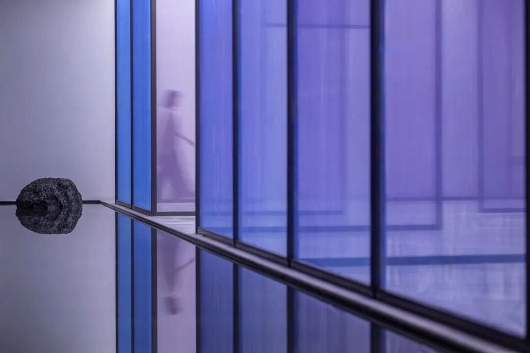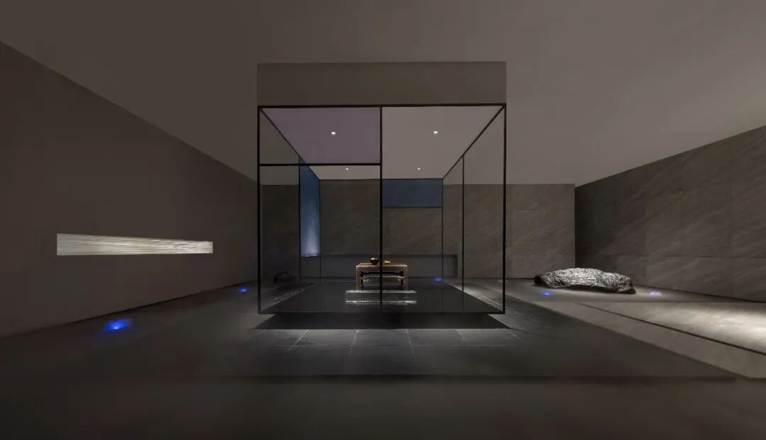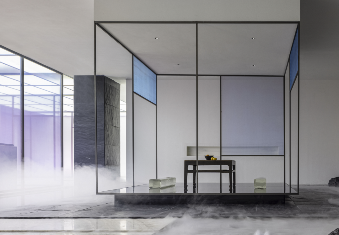 推開展廳的大門,極富藝術感的空間映入眼簾。一個個雲霧繚繞、夢幻般的透明盒子,隨著光影變化,描繪出“水外遠山晨霧重”的意境。
