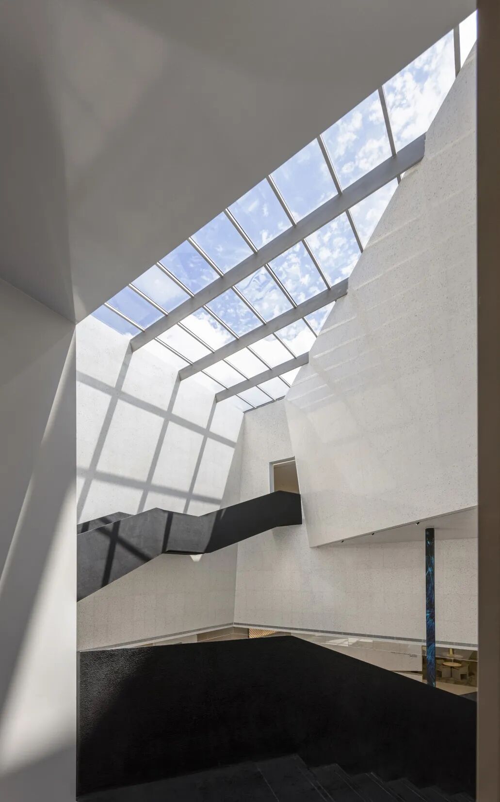 中庭,以極富層次感的空間描繪出媽灣立體城市的概念。以一種不設限的未來姿態,讓媽灣未來理想城市的恢弘畫卷延伸出更豐富的場域。眺望城市,用簡潔有力的線條營造出現代建築的遒勁力量感。