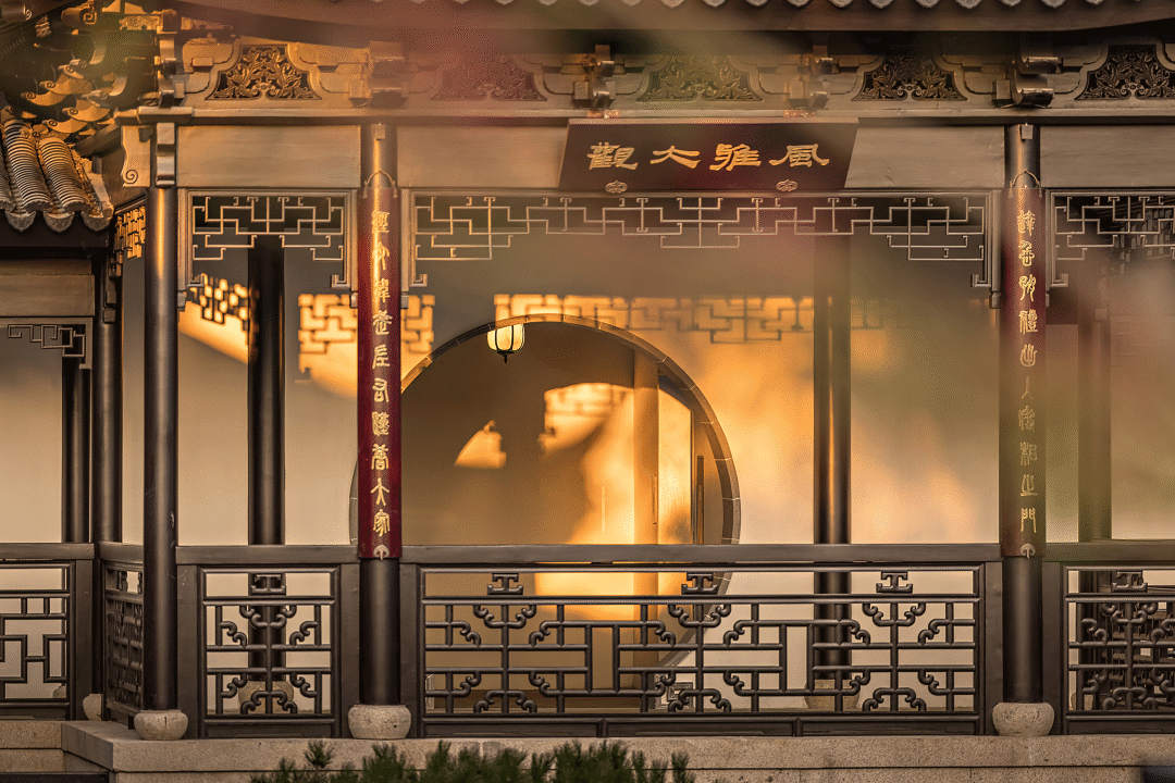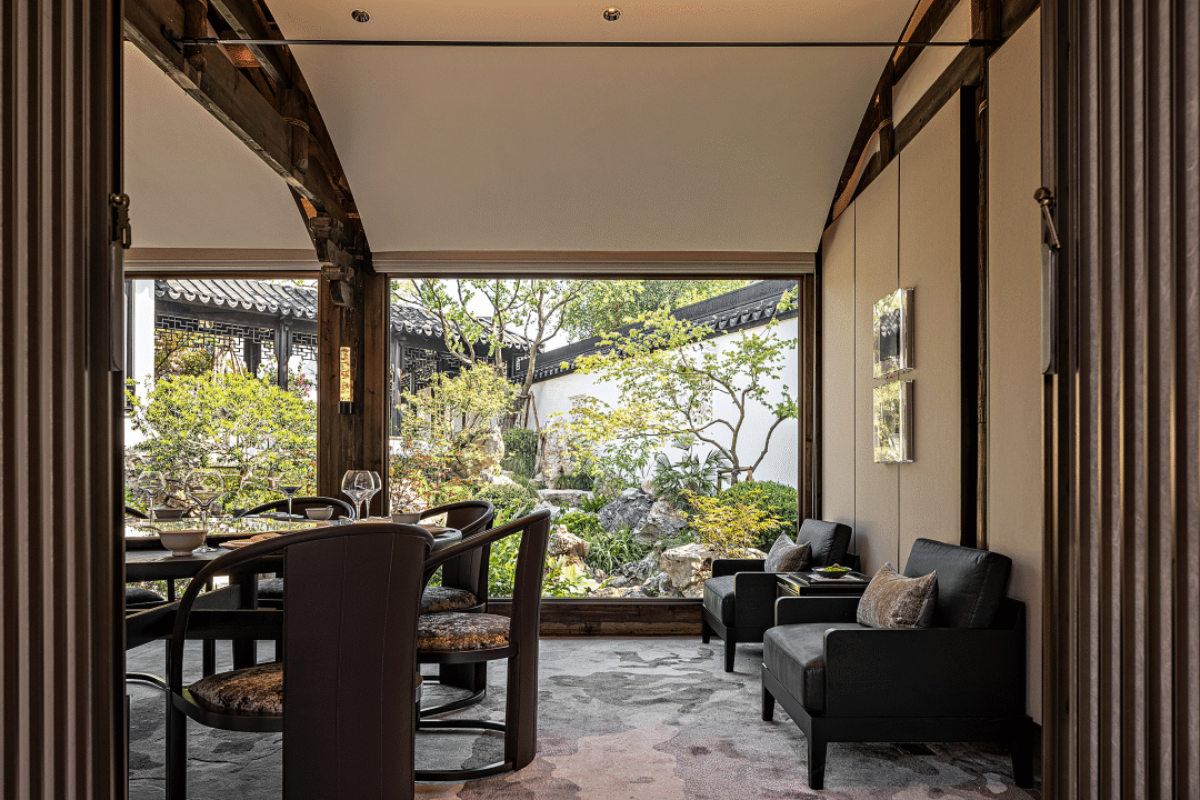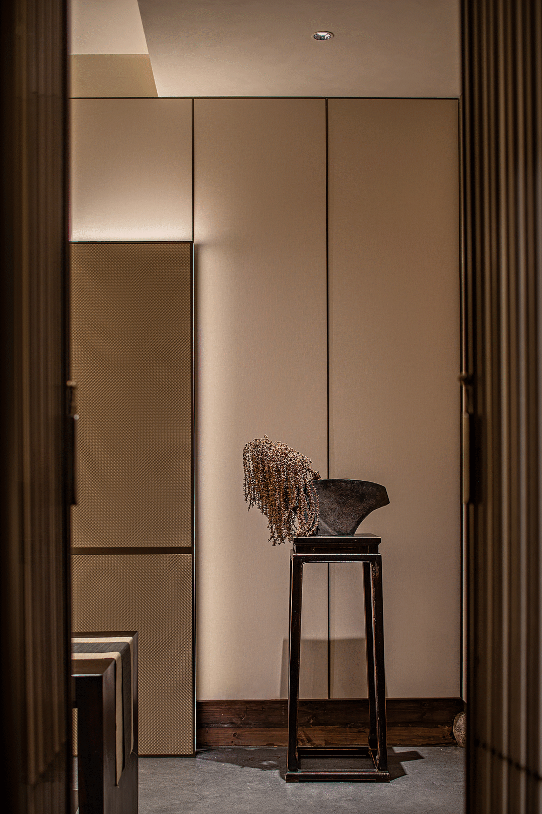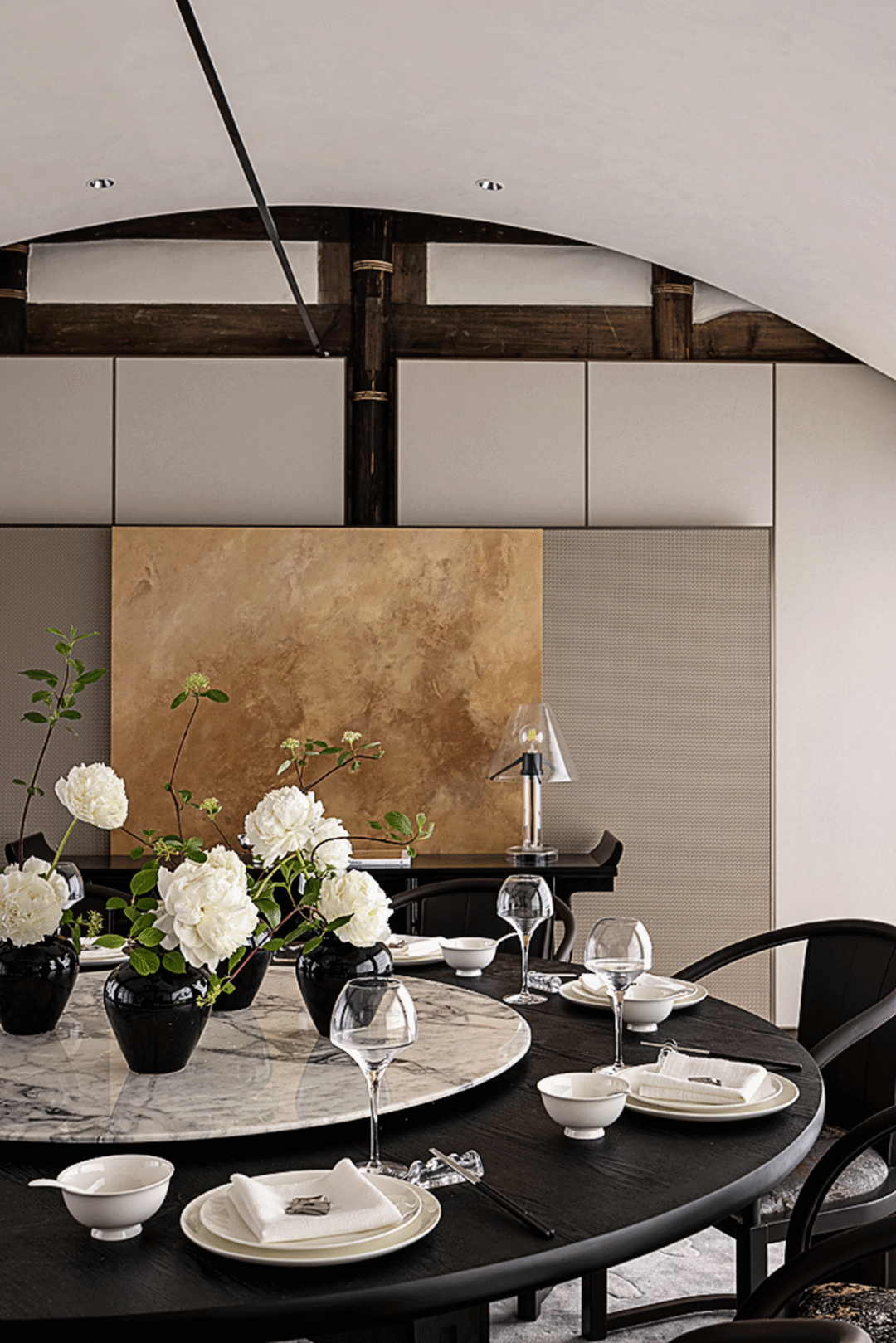 私宴空間以軸對稱的形式分布既體現了東方美學與傳統建築的古韻, 每一根房梁、立柱,都記錄了老建築在歲月變遷中的印記,是歷史的傳承,亦是文化的縮影。